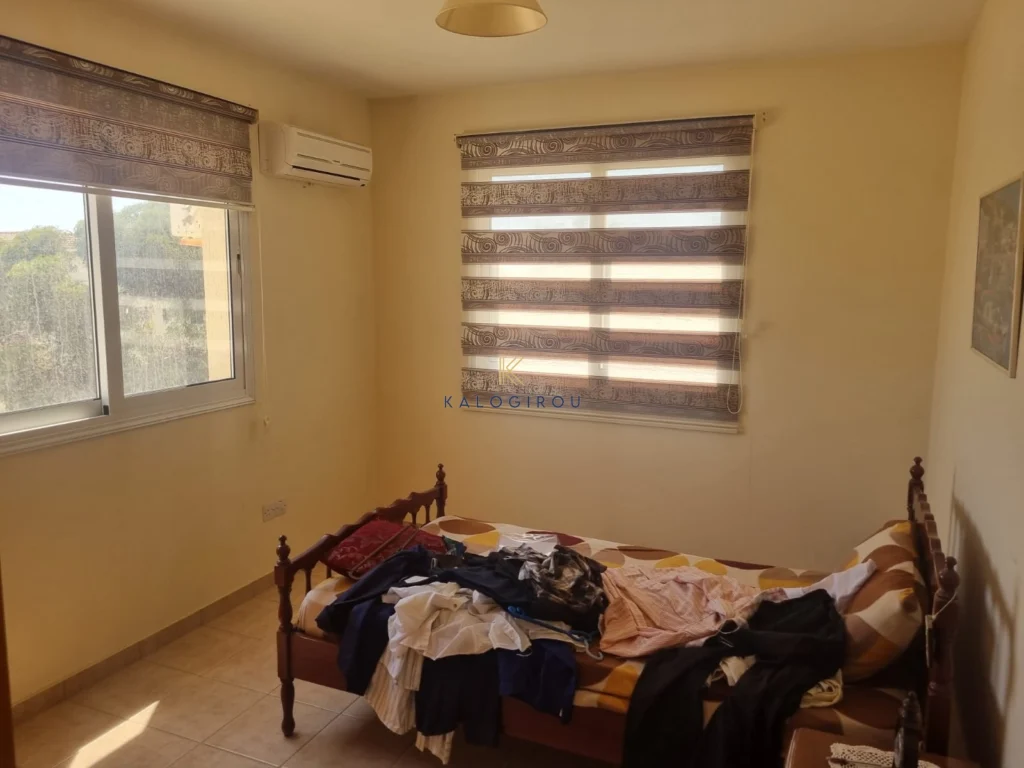 Apartment for sale in Tersefanou area, Larnaca. It consists of an open plan kitchen, living, dining area, main bathroom, two bedrooms, one en suite shower room, and covered veranda. Moreover, the property has access to a covered parking on the ground floor.