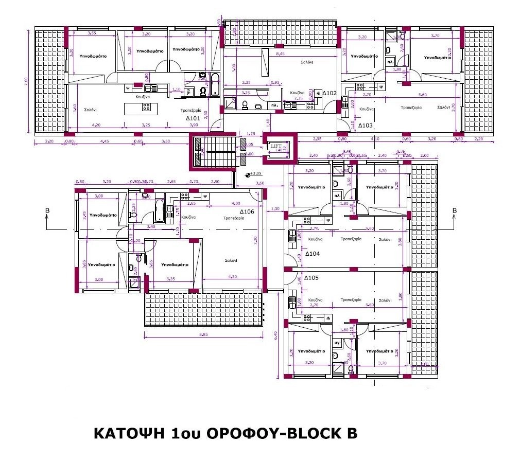 Three-bedroom apartment 101, with a total area of 120 m², is located on the first floor of a three-storey building in Block B.