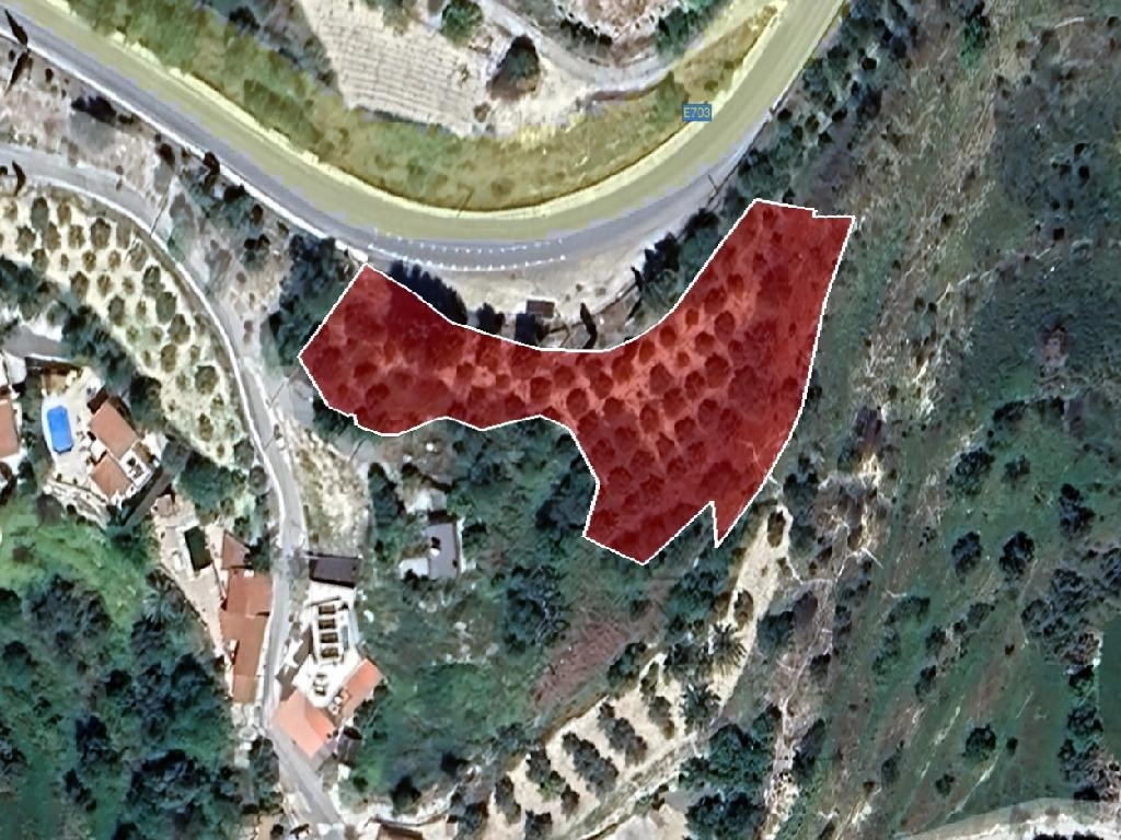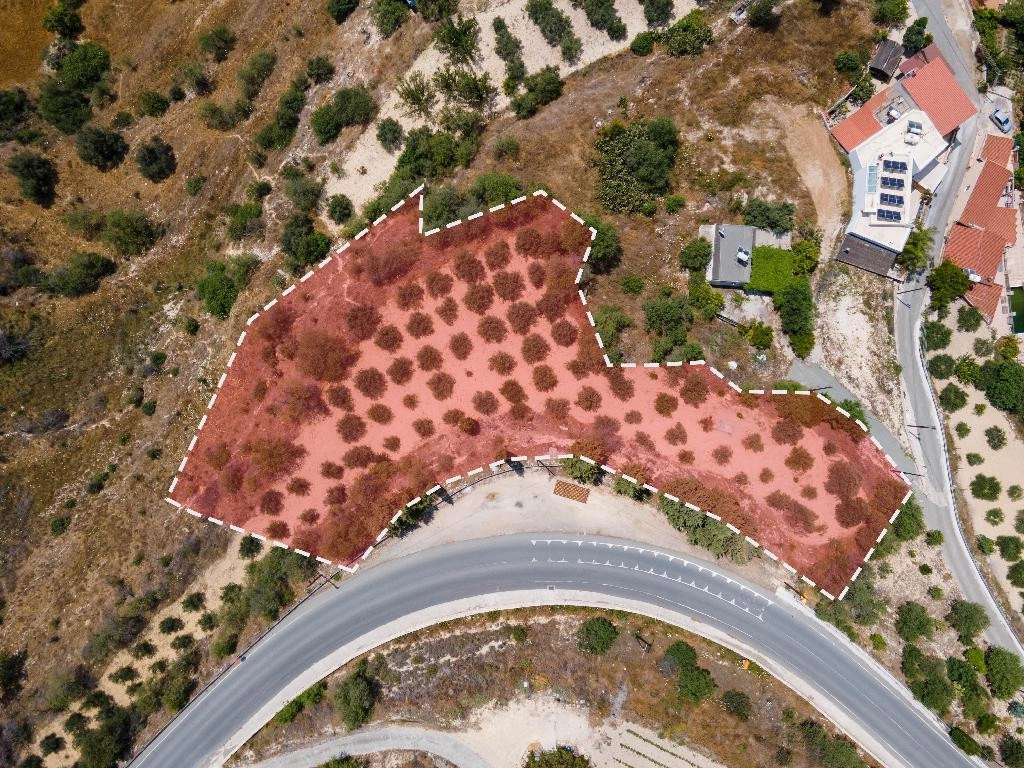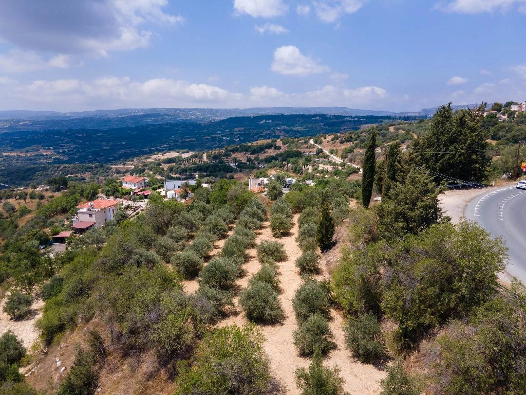 A residential field in the village of Psathi, Paphos District. The property has an irregular shape with an inclined surface and enjoys road frontage along three boundaries, though one of the roads does not currently exist on site. It lies within residential planning zones H2 (71%) and H1 (29%), allowing the development of two-storey and three-storey buildings with building factors of 90% and 120% respectively. The property is suitable for either plot division or residential development.