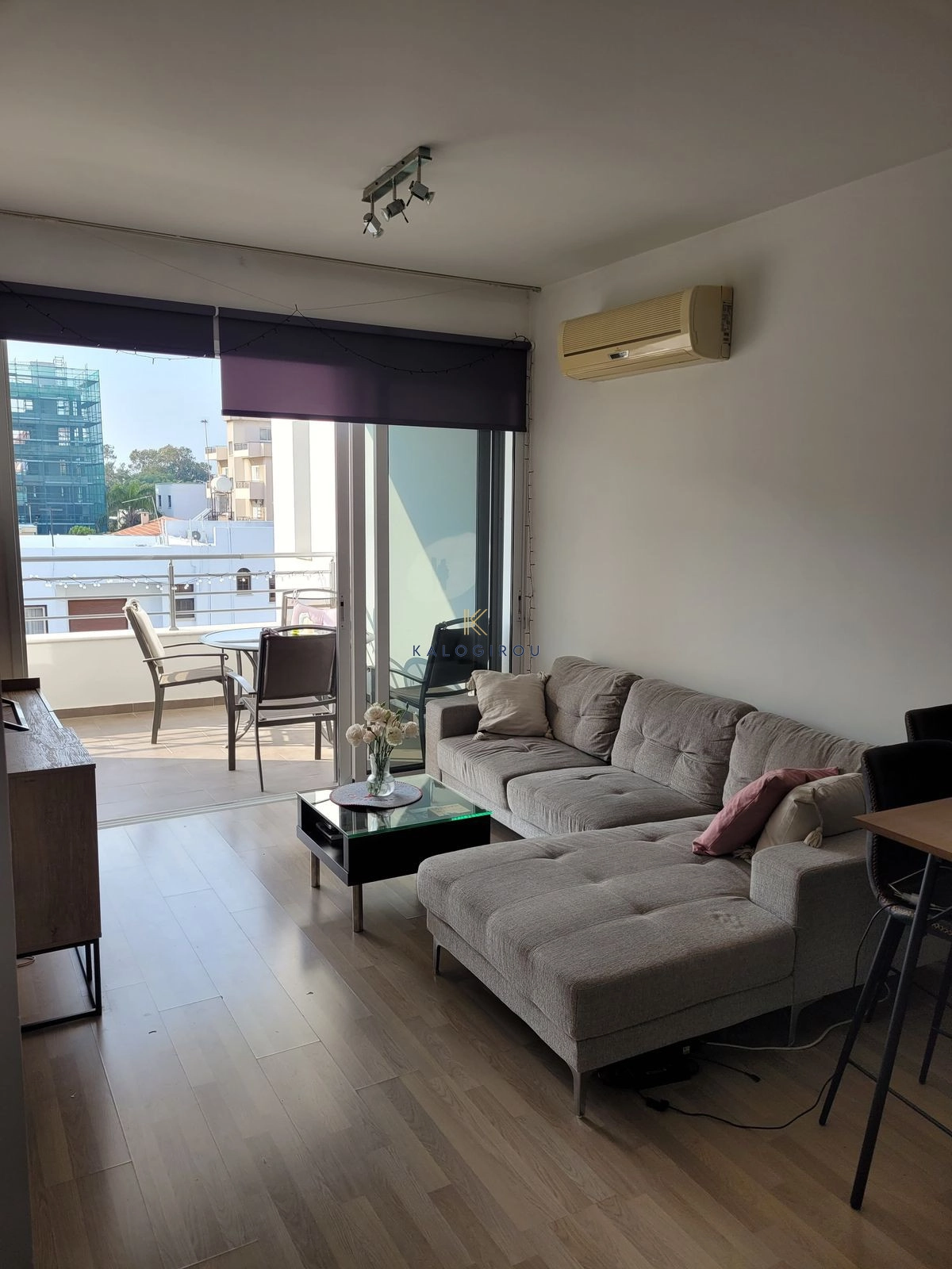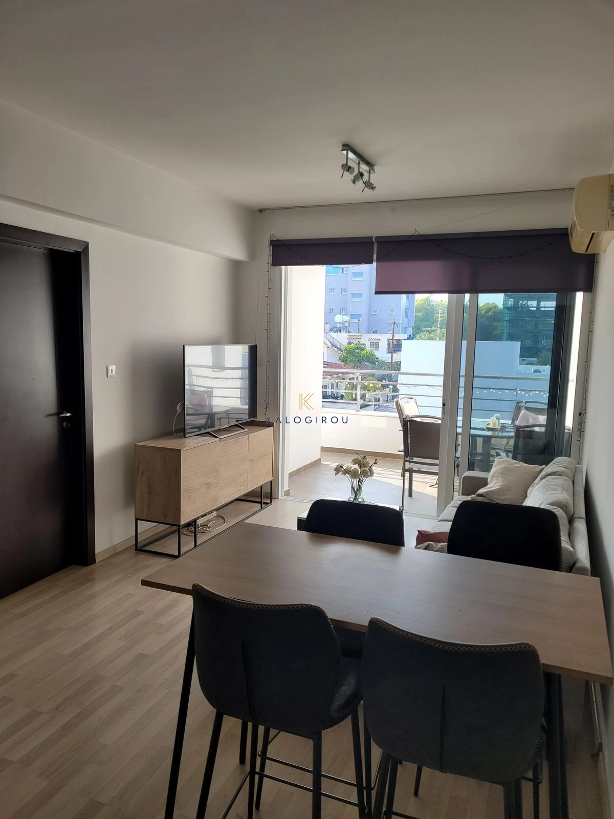 Apartment for sale in LarnacaTown Center. The apartment is located on the 1st floor and has 51 sq. m. internal covered area and 20 sq.m. of covered veranda. The property consists of 1 bedroom, open plan kitchen, living room, 1 bathroom, A/C and on the ground floor there is a parking space available.