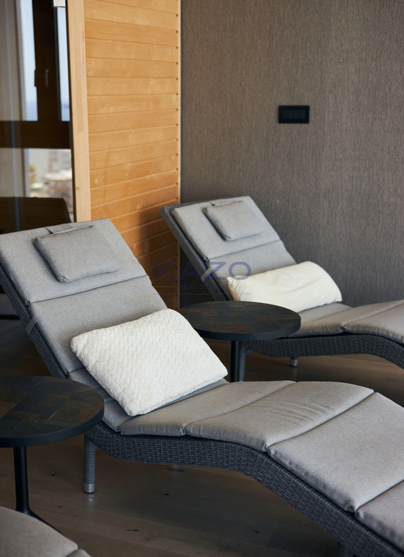 Residents enjoy a communal swimming pool and a fully equipped gym, providing relaxation and fitness options within the complex. Underfloor heating ensures comfort throughout the year. The apartment faces southwest, filling the space with natural sunlight, and offers breathtaking sea views from the living area and bedrooms.