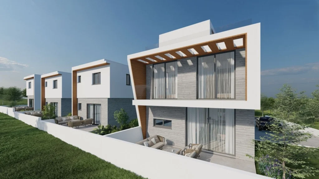 A three-bedroom, two-storey villa, offering an internal area of 165 m², is situated on a 310 m² plot.
