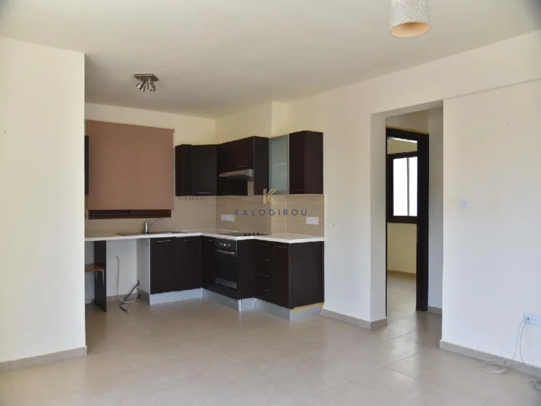 Apartment for sale in Pervolia, Larnaca. It consists of kitchen/living room/dining room as an open space, two bedrooms, one bathroom, covered and uncovered veranda. Furthermore, it has a parking space on the ground floor. The area of the internal spaces is 61 sq.m, covered veranda is 10 sq.m and uncovered veranda is 8 sq.m.