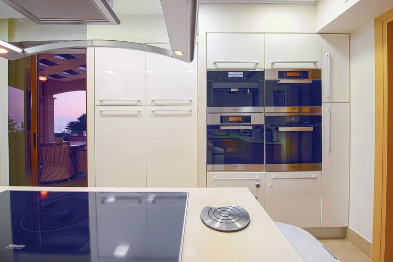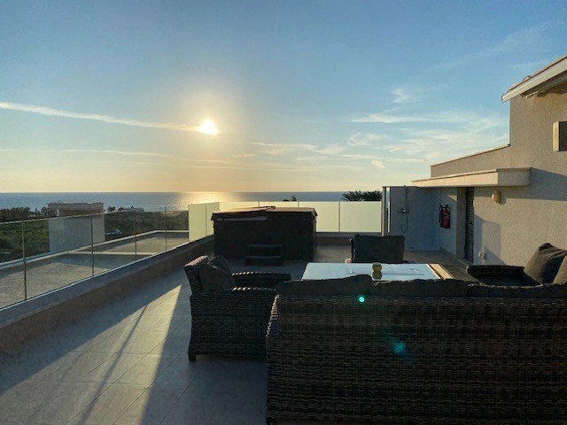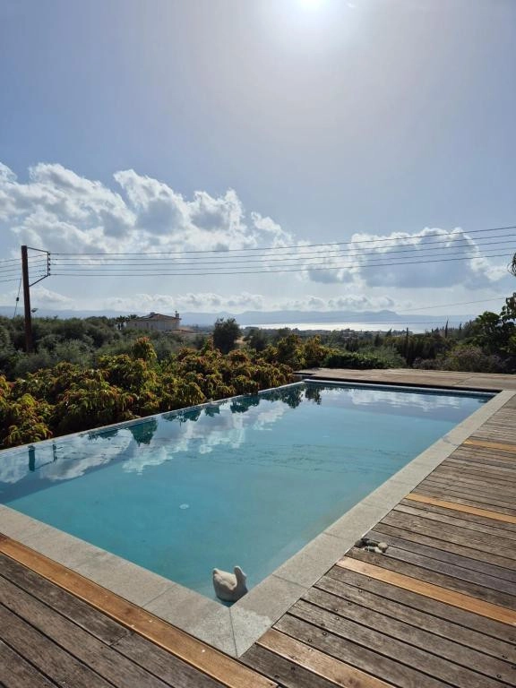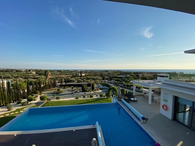 A five-bedroom villa for sale in the area of Armou, Paphos. This unique property is part of a small development of just six detached houses and offers panoramic sea views. The villa has an internal area of 414 m² and sits on a 1500 m² plot. Built in 2024, it is fully equipped for comfortable year-round living, featuring underfloor heating, a VRV air conditioning system, high-end finishes, built-in furniture and appliances, private parking, a swimming pool, and a covered garage for two cars. The ground floor includes a spacious open-plan living room and kitchen with access to a large veranda and the pool area, along with three bedrooms. The lower level comprises an additional living area, a bedroom, an office, a small gym, a laundry room, and a utility room. The villa is just a short drive from Minthis Resort and the International School of Paphos, with easy access to the highway leading to Limassol and all city amenities including shops, hospitals, and a university.