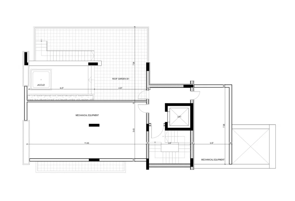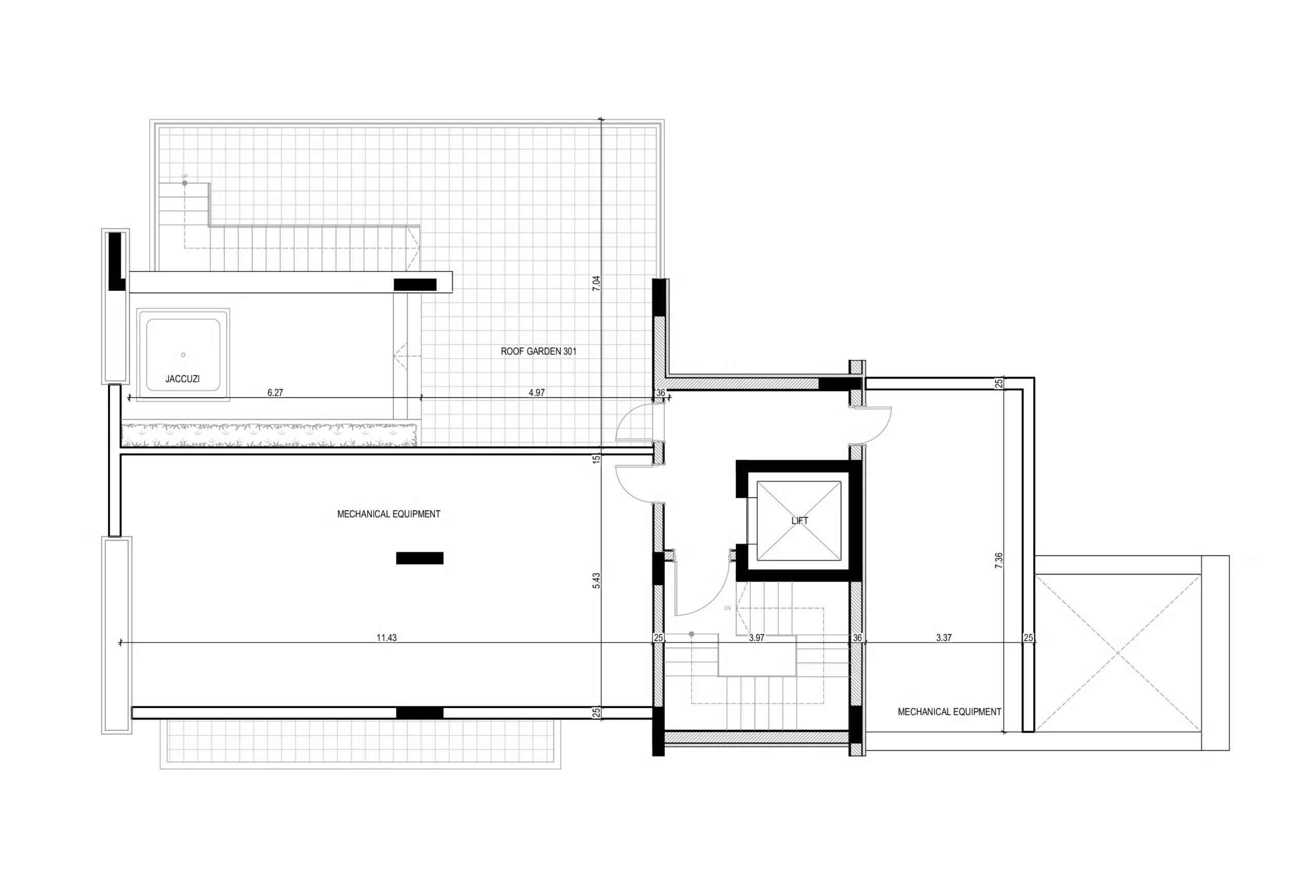 Fully furnished luxury 3-bedroom penthouse, with an internal area of 139 m² and a 60 m² roof garden, is located on the third floor of a three-storey building.