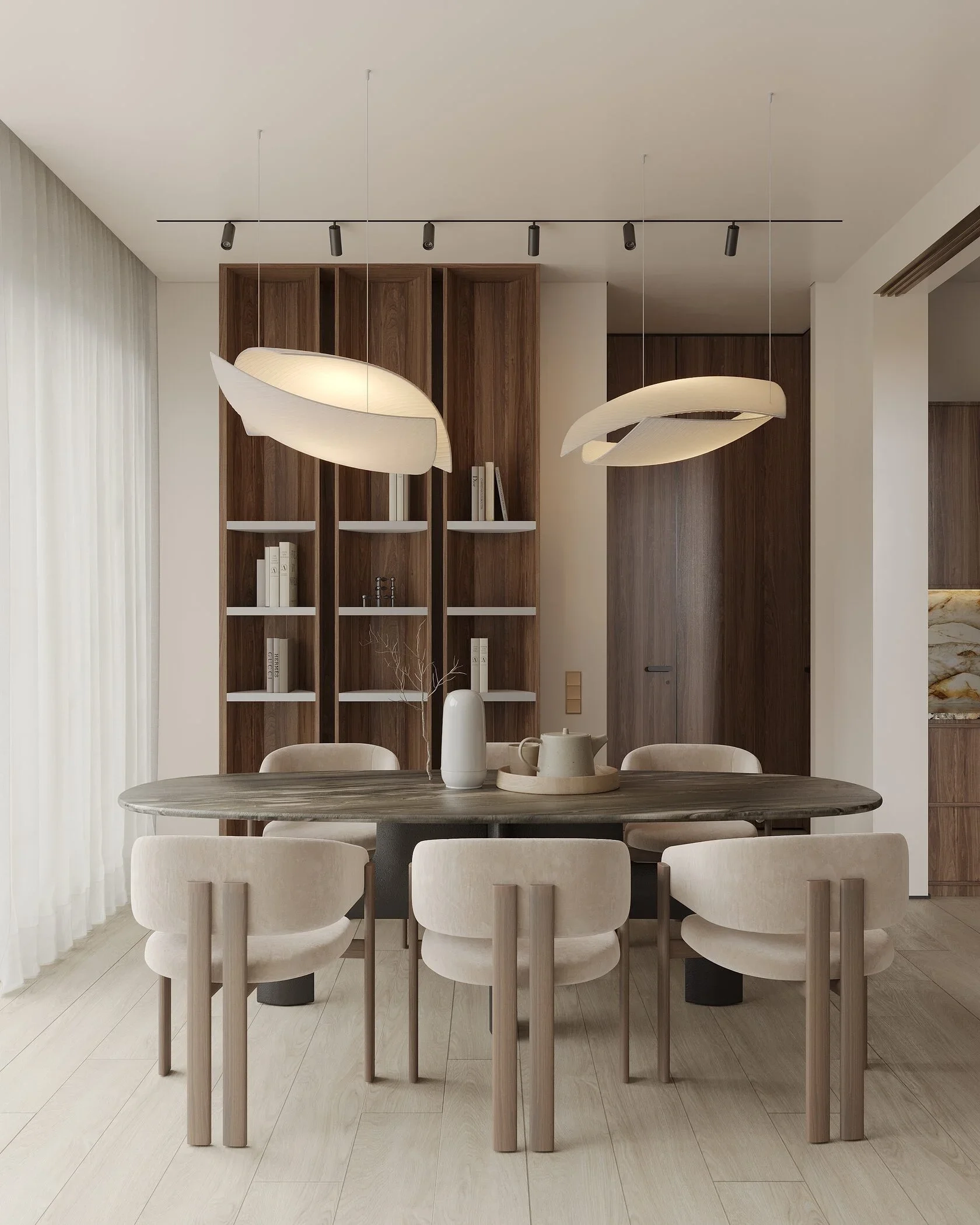 The modern faсade of the complex features sleek lines and elegant architecture, highlighting sophistication and timeless design.