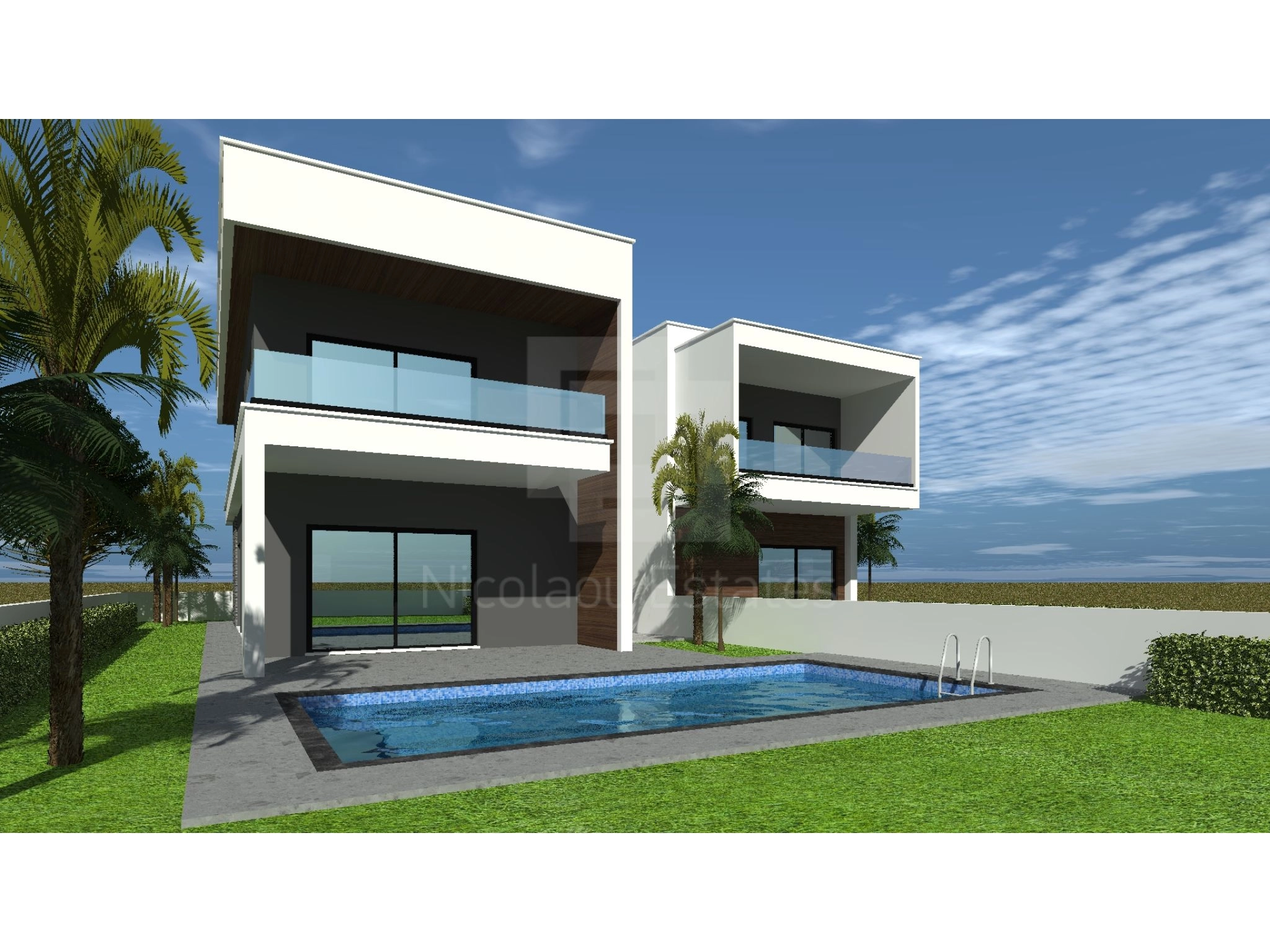 Beautiful modern 4 bedroom detached villa with a private swimming pool in a new quiet build up area of Agios Athanasios. Agios Athanasios is a thriving community with an abundance of amenities conveniences as well as close proximity to the city of Limassol. This project consists of 2 detached houses both with swimming pool and photovoltaic system. House 1 4 bedrooms master with en suite bathroom a total of 2 bathrooms and 3 W.Cs open plan with kitchen living and dining rooms and large garden with a private swimming pool 8m X 4m. The plot is 470sq.m the internal covered areas 172sq.m a large covered veranda of 42sq.m and a double covered car port. Price 730 000 plus VAT House 2 4 bedrooms master with en suite bathroom a total of 2 bathrooms and 3 W.Cs open plan with kitchen living and dining rooms and a very good size garden with a private swimming pool 8m X 4m. The plot is 341sq.m the internal covered areas 153sq.m a large covered veranda of 52sq.m and a covered car port. Price 620 000 plus VAT Projected delivery February 2027 Please call us for more detailed updated information and to arrange any viewing.