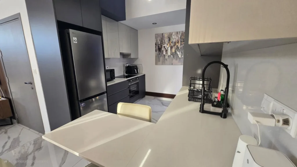Located on the 2nd floor of a 3-storey building, this bright 2-bedroom, 2-bathroom apartment sits on a desirable corner plot in a peaceful cul-de-sac. Delivered in April 2025 and currently undergoing partial finishes, the home features an open-plan living area combining the living room, dining space, and a spacious custom kitchen. The kitchen includes a small private balcony, while a large corner balcony connects to the living room, offering plenty of natural light and outdoor space.
