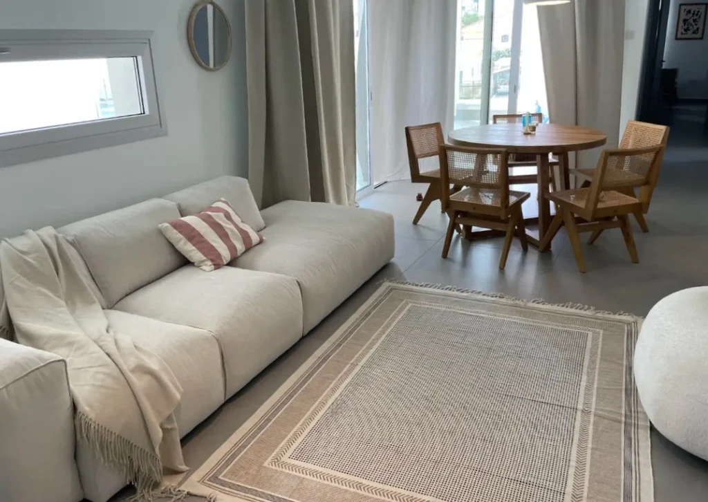 A beautifully designed and ideally located apartment in Larnaca. 2 bedrooms, 2 bathrooms, spacious living room and a separate kitchen. Underfloor heating, fully furnished. This project, situated next to Radisson Blu, was delivered in March 2024.