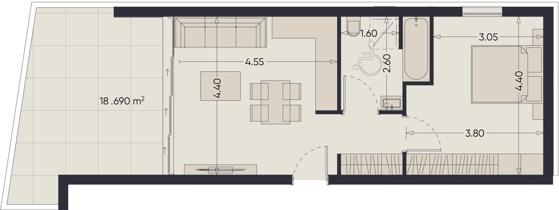 The project offers a variety of formats — from compact one-bedroom apartments starting at 67 m², ideal for rental, to a premium three-bedroom penthouse of 177 m², perfect for comfortable living or long-term investment