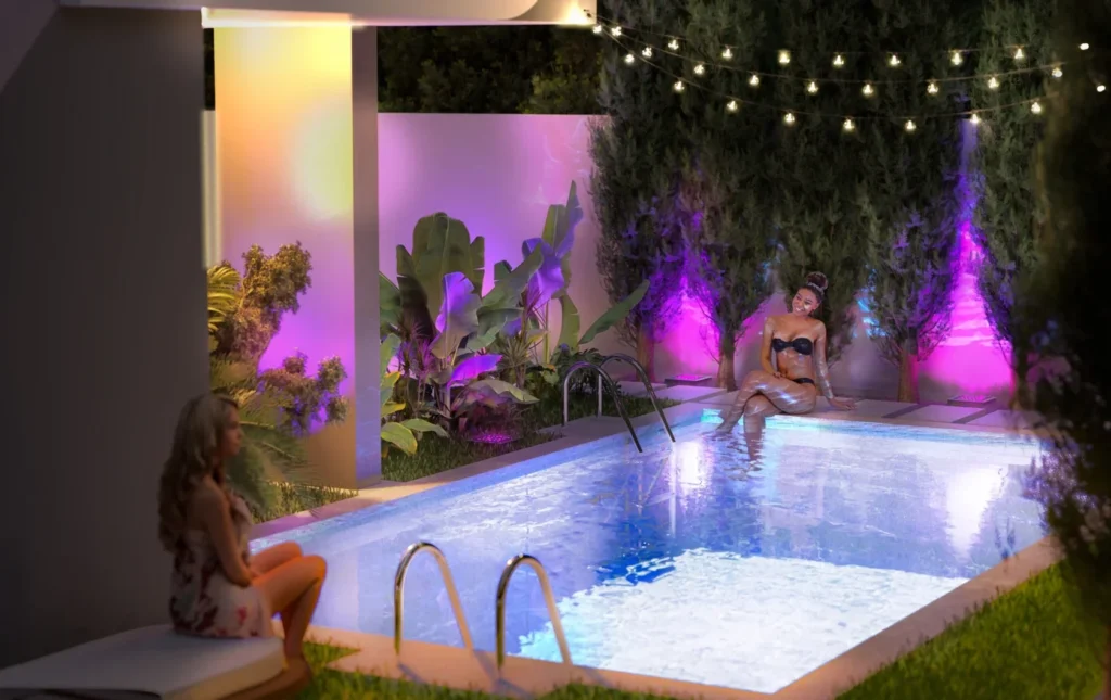 The complex provides premium amenities, including underfloor heating and energy-efficient photovoltaic systems, a rooftop gym with panoramic views and a shared swimming pool for relaxation.