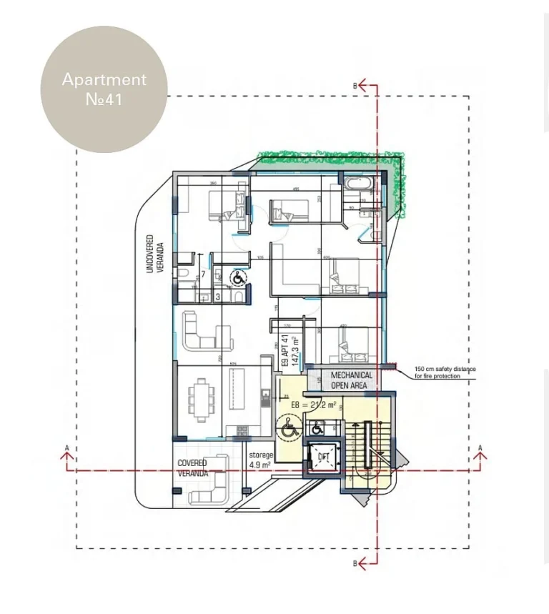 This is a stylish and modern gated residential complex located in the heart of Limassol. The four-story development offers exclusivity and privacy, with only one spacious apartment per floor, each measuring 143 m².