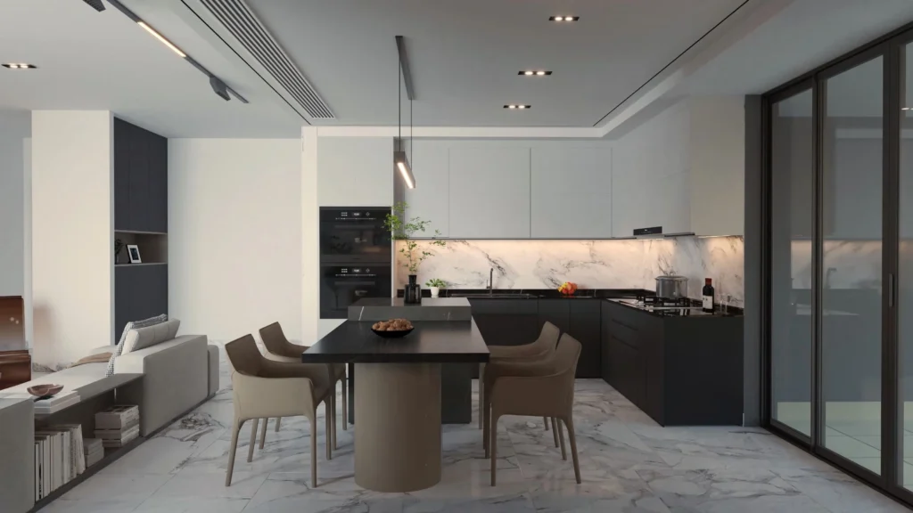 The complex provides premium amenities, including underfloor heating and energy-efficient photovoltaic systems, a rooftop gym with panoramic views and a shared swimming pool for relaxation.