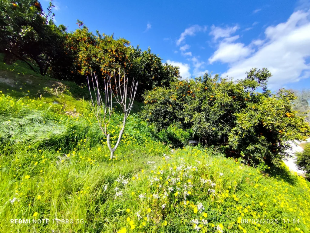 In the orchard you can find orange trees, mandarin trees, lemon trees etc.
