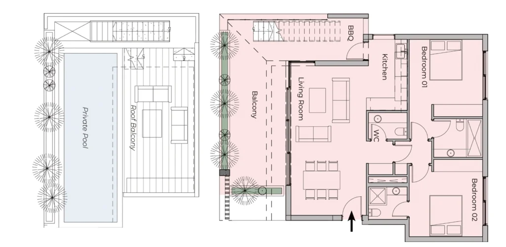 For sale a two-bedroom penthouse with a roof terrace in Germasogeia, Limassol, in an exclusive complex of only 8 apartments that combines style and tranquility. Spacious interiors with floor-to-ceiling panoramic windows and large verandas that expand the living area during the warm season create an atmosphere of comfort and coziness.The apartments are made of the highest quality materials and comply with energy efficiency class A+. The penthouses of the complex are additionally equipped with a private pool and a spacious roof terrace, and a communal swimming pool is available to all residents.The complex is located in a prestigious and quiet area just 800 meters from the sea, with convenient access to urban infrastructure, the picturesque coast and business centers. The airports of Paphos and Larnaca are only 45 minutes away by car.Modern underfloor heating and air conditioning systems, panoramic double-glazed windows, high-quality kitchen cabinets and granite countertops create the perfect combination of comfort, style and advanced technology, making this property attractive for living and investment.