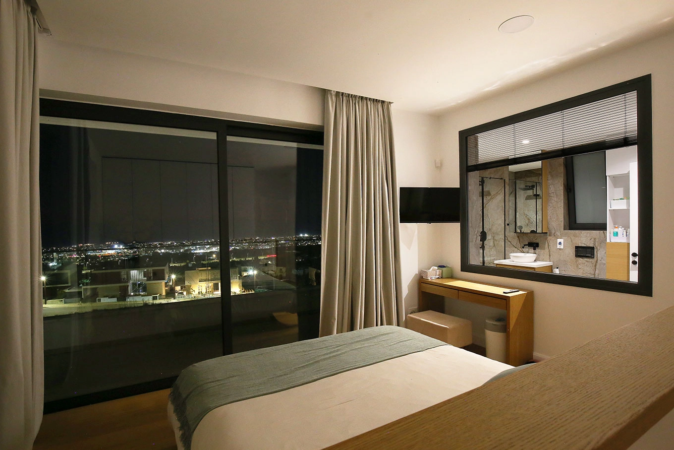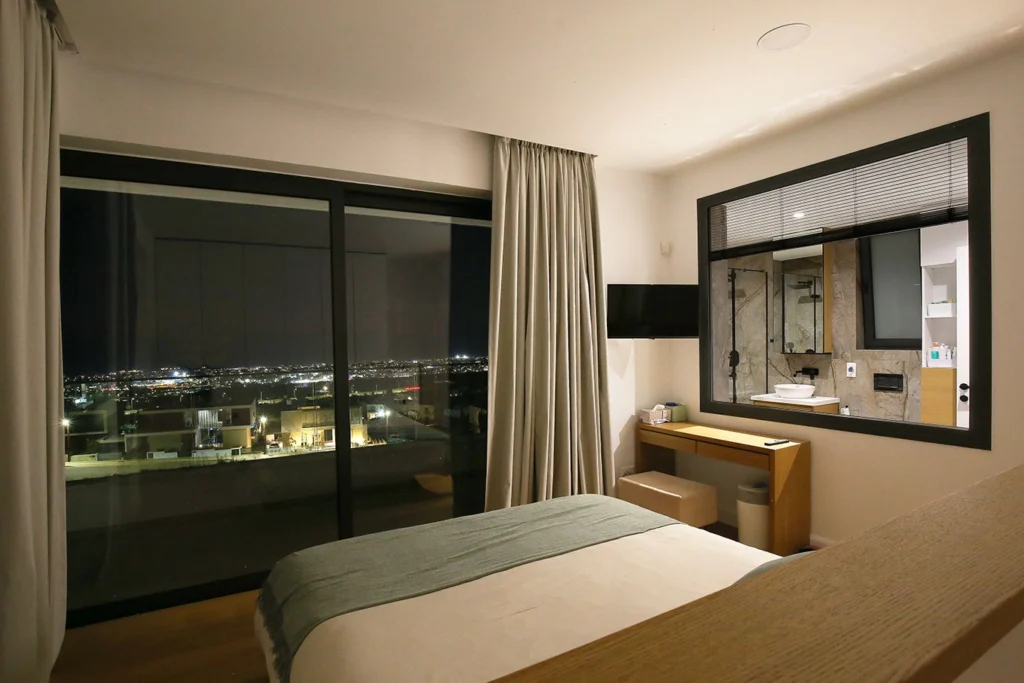The finished residence in Konia, Paphos on three floors with 3 bedrooms and an office is characterized by a minimalist and elegant design, as well as modern aesthetics. The kitchen, furniture and bioethanol fireplace were designed specifically for this home. The glass-walled wine cellar highlights the unique style. All rooms offer panoramic sea views.A glass interior bridge suspended above the dining area connects the master bedroom to the rest of the rooms, creating a spectacular architectural accent and offering unique views. There is an impressive infinity pool in the surrounding area. The land area is 750 m2. There is a spacious parking area. The entire house has underfloor heating, an elevator, a smart home system and air conditioning. The distance to the sea is only 4000 m. This project embodies the essence of modern architectural design, combining innovation and elegance in every aspect.