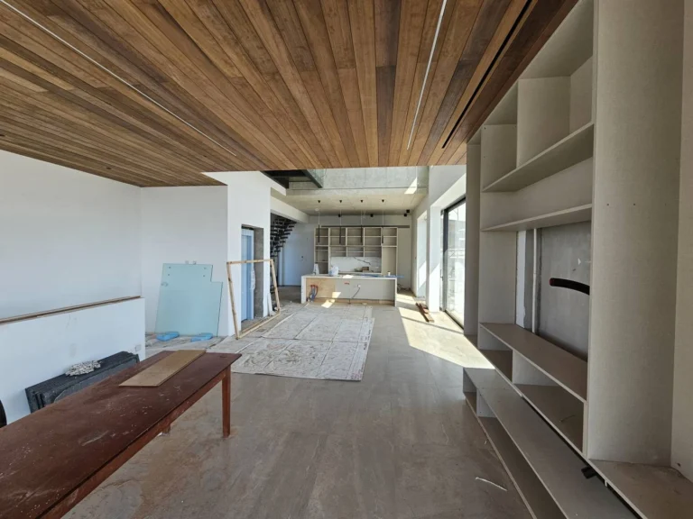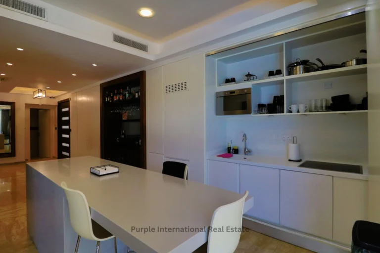 The finished residence in Konia, Paphos on three floors with 3 bedrooms and an office is characterized by a minimalist and elegant design, as well as modern aesthetics. The kitchen, furniture and bioethanol fireplace were designed specifically for this home. The glass-walled wine cellar highlights the unique style. All rooms offer panoramic sea views.A glass interior bridge suspended above the dining area connects the master bedroom to the rest of the rooms, creating a spectacular architectural accent and offering unique views. There is an impressive infinity pool in the surrounding area. The land area is 750 m2. There is a spacious parking area. The entire house has underfloor heating, an elevator, a smart home system and air conditioning. The distance to the sea is only 4000 m. This project embodies the essence of modern architectural design, combining innovation and elegance in every aspect.