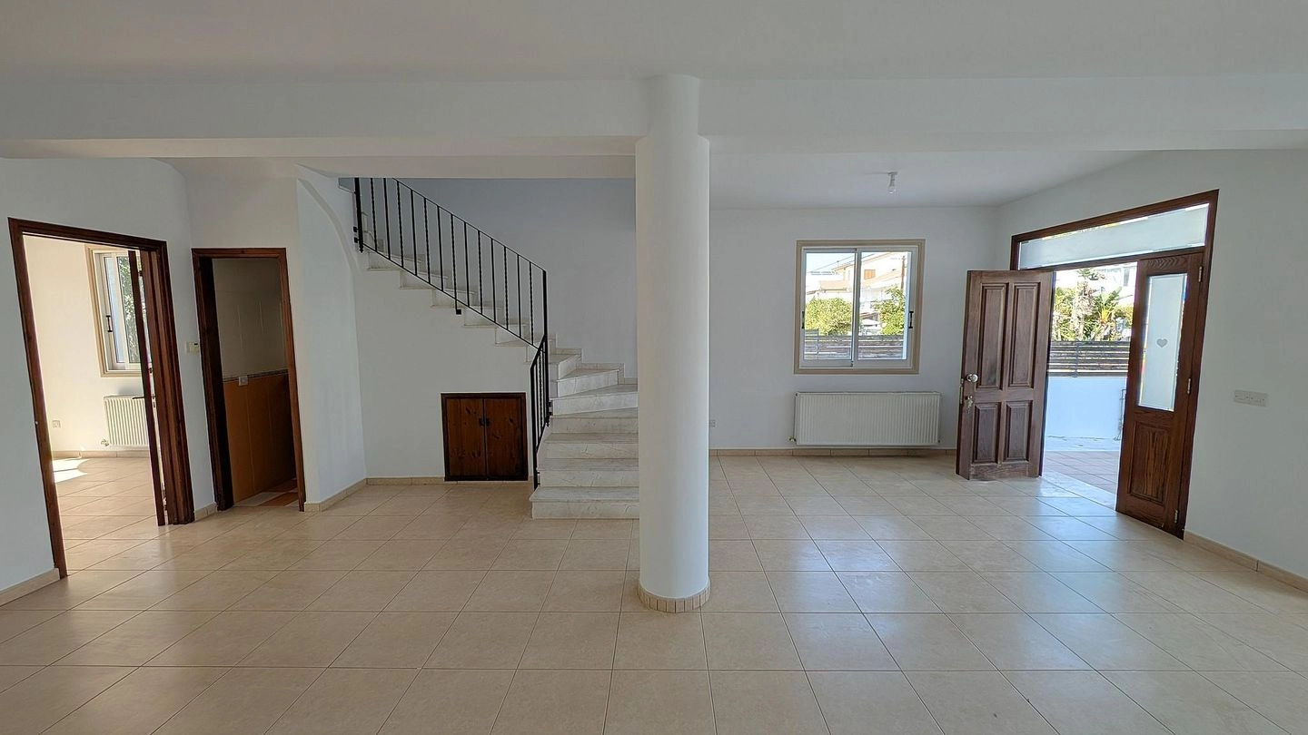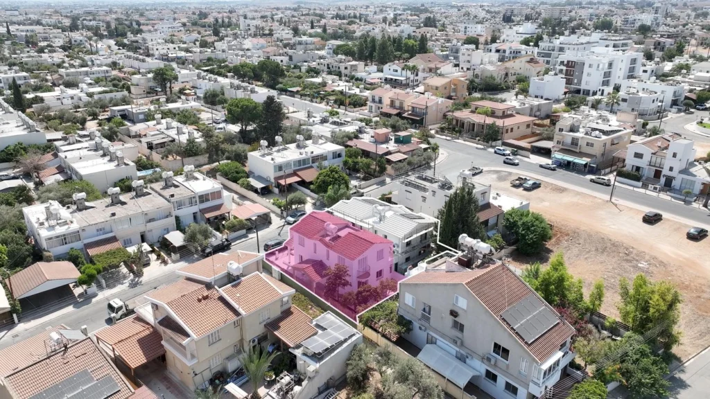 Located in a quiet residential area within the Agia Paraskevi quarter of Lakatamia Municipality this two storey semi detached home offers generous living spaces and excellent accessibility. The property is built on a 50 distributed share and includes a covered garage. Location Highlights Approx. 340m east of Archbishop Makarios III Avenue Approx. 630m southwest of METRO roundabout Approx. 1.1km west of Tseriou Avenue Ground Floor Layout Open plan living sitting and dining area Separate kitchen with dining space and pantry Guest W C First Floor Layout Four bedrooms including a master with en suite bathroom One shared bathroom Two uncovered verandas Outdoor Features Covered and uncovered verandas Private yard Boiler room Covered parking space Planning Zone Details Zone 5 Building Coefficient 100 Coverage 50 Maximum Floors 3 up to 13.5m height Additional Info Certificate of Final Approval and Distribution Agreement in place This property is ideal for families seeking space and comfort in a well connected neighborhood with easy access to major roads and amenities.