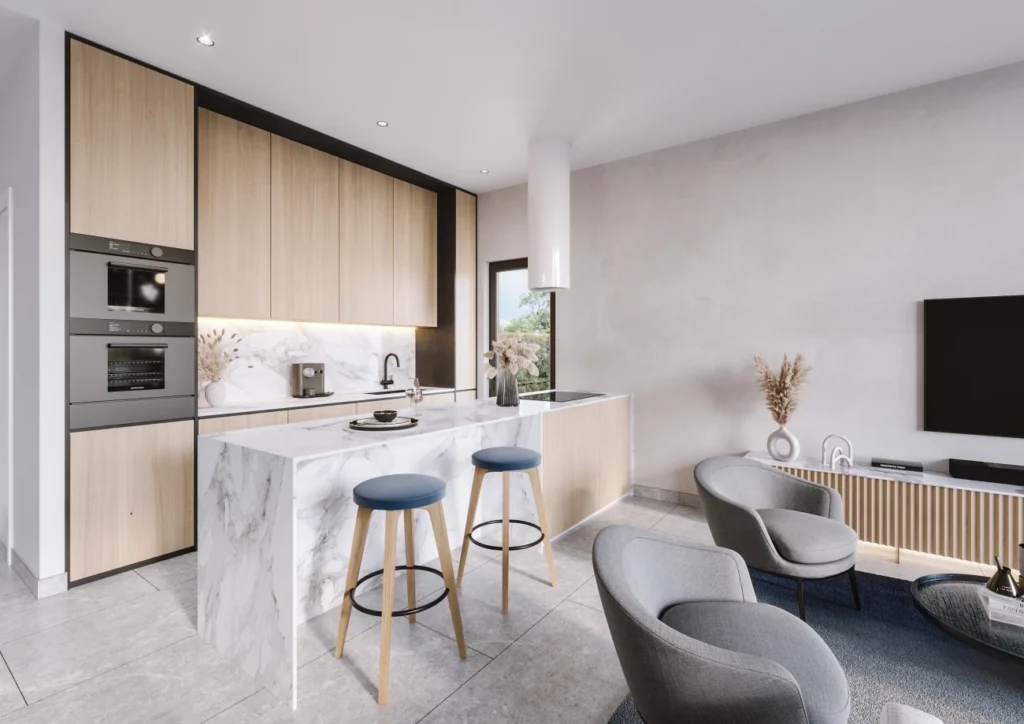 Fully fitted modern kitchen with premium cabinetry and sleek countertops
