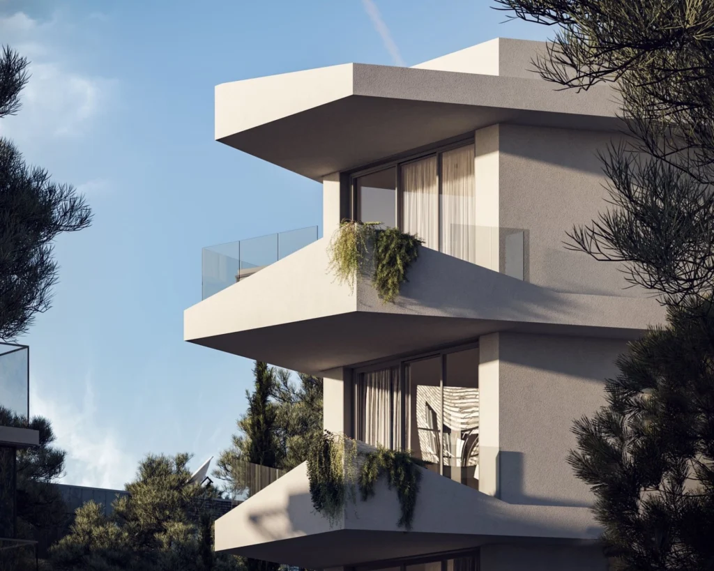 Each apartment in this project features a blend of modernism and minimalism. The property offers beautiful view from floor-to-ceiling windows, French doors and patio. Each floor in this project has only one apartment. The apartments will be equipped with concealed A/C and underfloor heating, en-suite bathrooms and custom kitchen with built-in sanitary facilities. The development will be just a few minutes walk to the city center, Tomb of the Kings, Kato Paphos, and the Paphos Kings Avenue Mall. The Project has EPC certificate with “B” Energy Efficiency Rating.