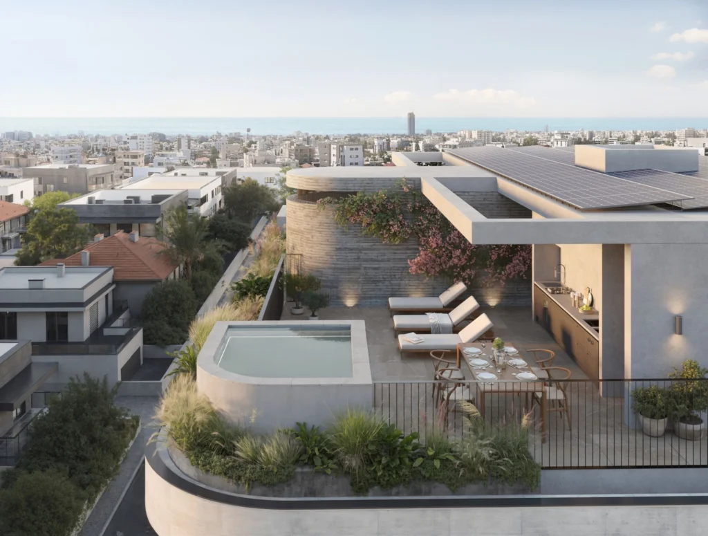 This project will have 12 apartments, each designed with attention to detail and quality materials. It is situated in the vibrant central neighborhood of Limassol. The residents will have an easy access to a wide range of amenities. Main features: Central VRV air-condition system Photovoltaics and net metering for each apartment Thermal aluminum lift and slide floor to ceiling height doors High ceilings Face recognition entry video phone Interior design consultation Automated gate for parking area Wifi controlled water heater Electric vehicle charge provision for each apartment The penthouses will enjoy private roof gardens that offer panoramic city views. The Project has EPC certificate with “A” Energy Efficiency Rating.