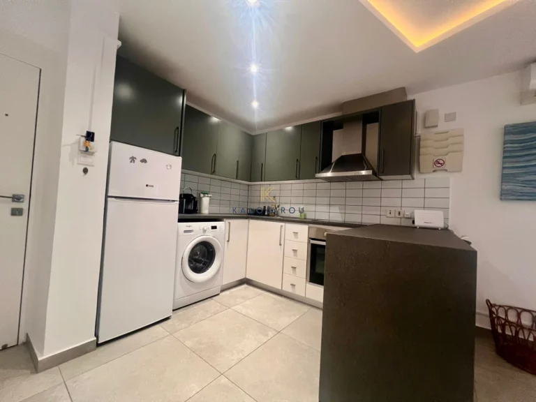 Fully Furnished Apartment for Sale in Makenzy area, Larnaca. The apartment consists of open plan kitchen, living and dining area, one bedroom and main bath with wc. Also, there is a covered parking space area and storage on the ground floor.