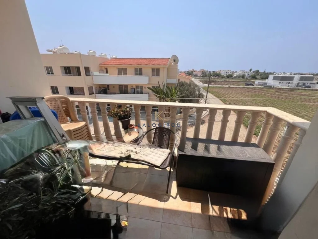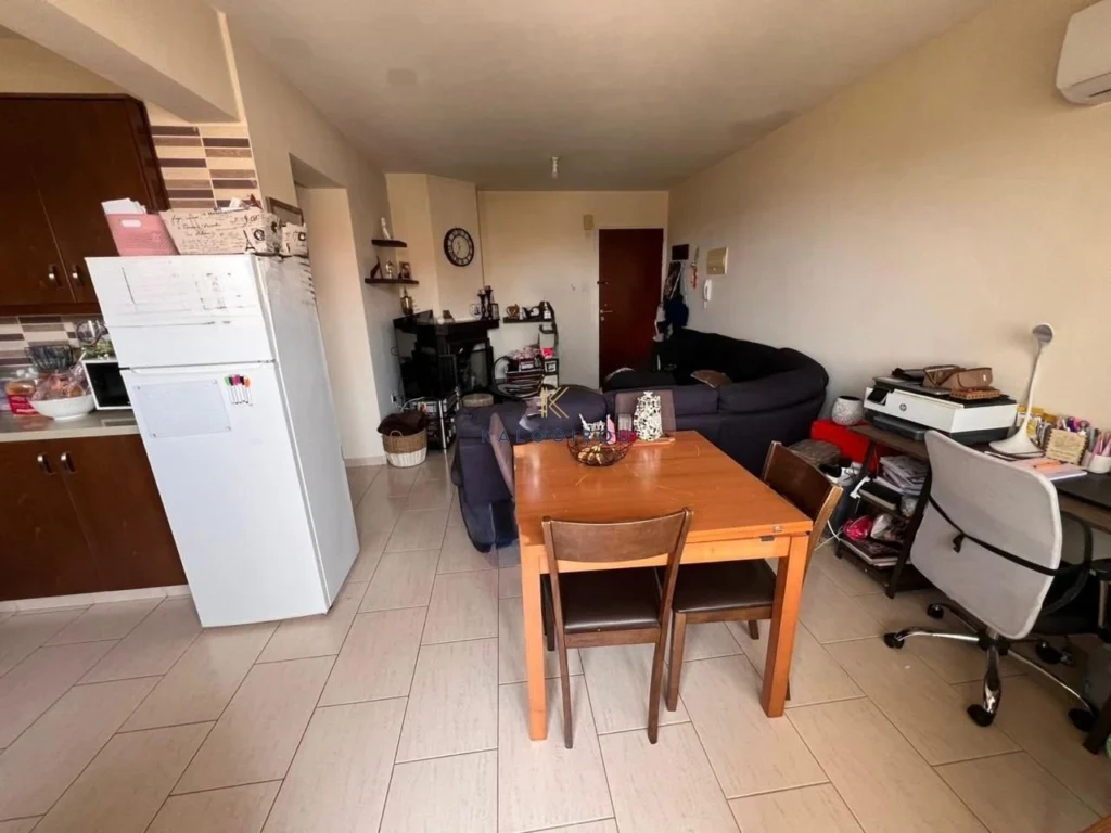 Apartment for sale in Pervolia area. The apartment comprises of an open plan kitchen, living and dining area, electrical appliances, A/C, two bedrooms, one bathroom with WC, covered parking and a veranda.