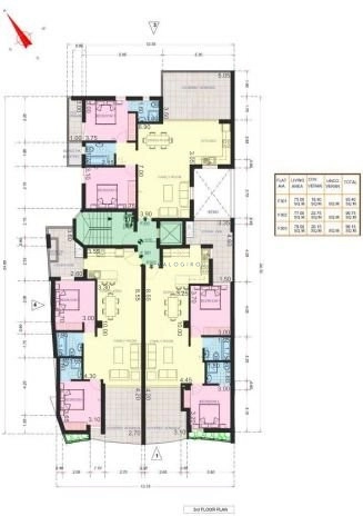Apartment for sale in Larnaca, Drosia area. The property consists of Two bedrooms, open plan kitchen, living and and dining area, one shower en suite, one bath, 2wc, 21.80 sq. m of Covered veranda, Covered parking and storage room.