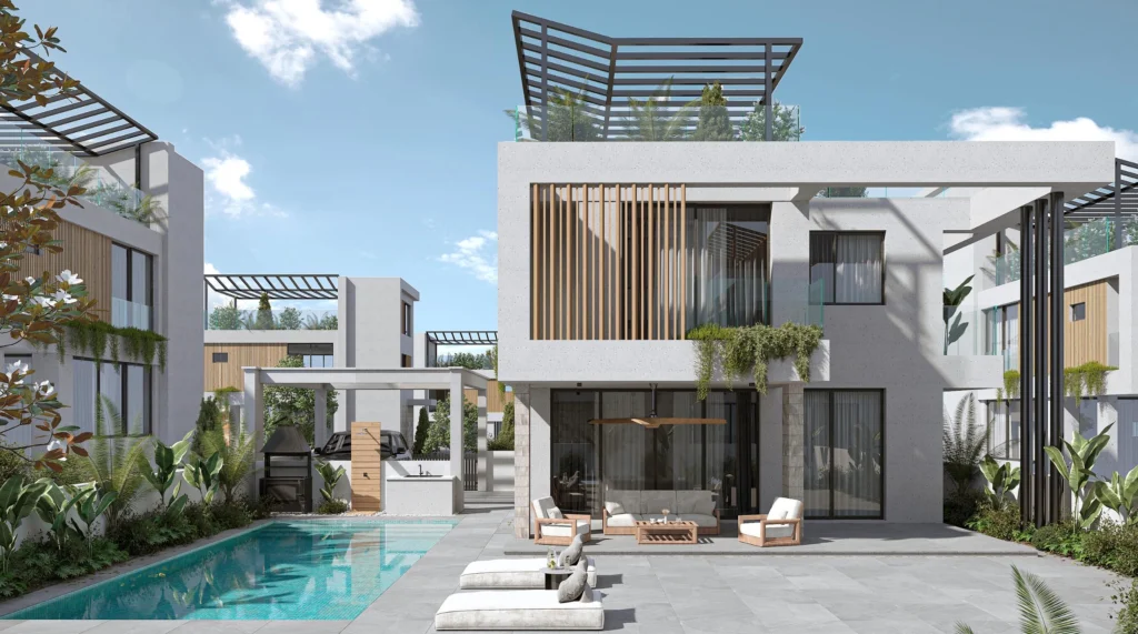 3 bedroom villa for sale in a new project in the heart of Ayia Triada, just 700 meters from the new Paralimni marina and 500 meters from the beach. This exclusive complex includes 31 elegant villas, each with a private pool and a rooftop garden, designed for maximum privacy, comfort and refined aesthetics. Natural materials (wood, stone, metal) and clean minimalist lines create a calm, refined environment. Spacious terraces, plenty of natural light and advanced smart home features take everyday life to a new level. Its excellent location provides easy access to the Blue Flag beaches, highway and Larnaca International Airport. Thanks to the rapidly developing marina area, which attracts large investments. The villas are designed taking into account the climatic conditions of the region and belong to the energy consumption class A.