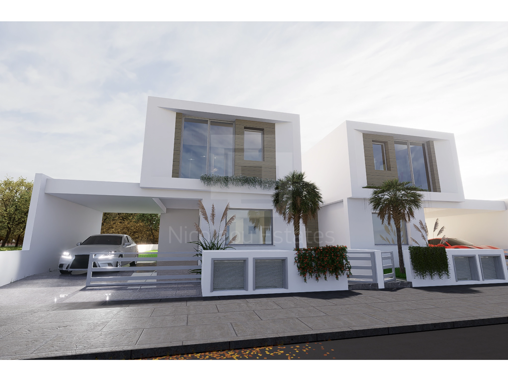 Καινούργιες κατοικίες τριών υπνοδωματίων προς πώληση στην περιοχή Παναγιά στην Παλουριώτισσα σε ωραία τοποθεσία και κοντά σε πολλές υπηρεσίες. Οι κατοικίες θα είναι χτισμένες σε μοντέρνα γραμμή και θα αποτελούνται η καθεμία από εμβαδόν περίπου 182τμ. καλυμμένου χώρου 3.50τμ. περίπου καλυμμένες βεράντες και 32τμ. περίπου καλυμμένος χώρος στάθμευσης. Το ισόγειο θα αποτελείται από τραπεζαρία κουζίνα σαλόνι WC ξένων με ντους διπλό στεγασμένο γκαράζ και προαιρετικά χώρο γραφείου. Ο όροφος θα αποτελείται από τρία υπνοδωμάτια ντους στο κυρίως υπνοδωμάτιο κουζινάκι μπάνιο και βεράντα. Εξωτερικά θα υπάρχει διαθέσιμος χώρος για πισίνα. Χαρακτηριστικά Πιστοποιητικό ενεργειακής απόδοσης Α Εγκατεστημένο σύστημα φωτοβολταϊκών απόδοσης 3KW Πρόνοιες για συστήματα κλιματισμού Πρόνοιες για κάμερες και ηλεκτρικό αυτοκίνητο Χώρο για πλυντήριο και στεγνωτήριο στον όροφο Εn suite στο κυρίως υπνοδωμάτιο Κυρίως μπάνιο και τουαλέτα ξένων στο ισόγειο Πιεστικό σύστημα νερού Κήπος Το ακίνητο εμπίπτει για χορηγία ακριτικών περιοχών New three bedroom houses for sale in the Panagia area of Palouriotissa in a nice location and close to many services. The houses will be built in a modern style and will each consist of an area of approximately 182 sq m. of covered space approximately 3.50 sq m. of covered verandas and approximately 32 sq m. of covered parking space. The ground floor will consist of a dining room kitchen living room guest WC with shower double covered garage and optional office space. The first floor will consist of three bedrooms shower in the master bedroom kitchenette bathroom and veranda. Outside there will be space available for a swimming pool. Features Energy Performance Certificate A Installed photovoltaic system with 3KW efficiency Provisions for air conditioning systems Provisions for cameras and electric car Space for washing machine and dryer on the first floor En suite in the master bedroom Main bathroom and guest toilet on the ground floor Pressurized water system Garden The property falls under the sponsorship of border regions