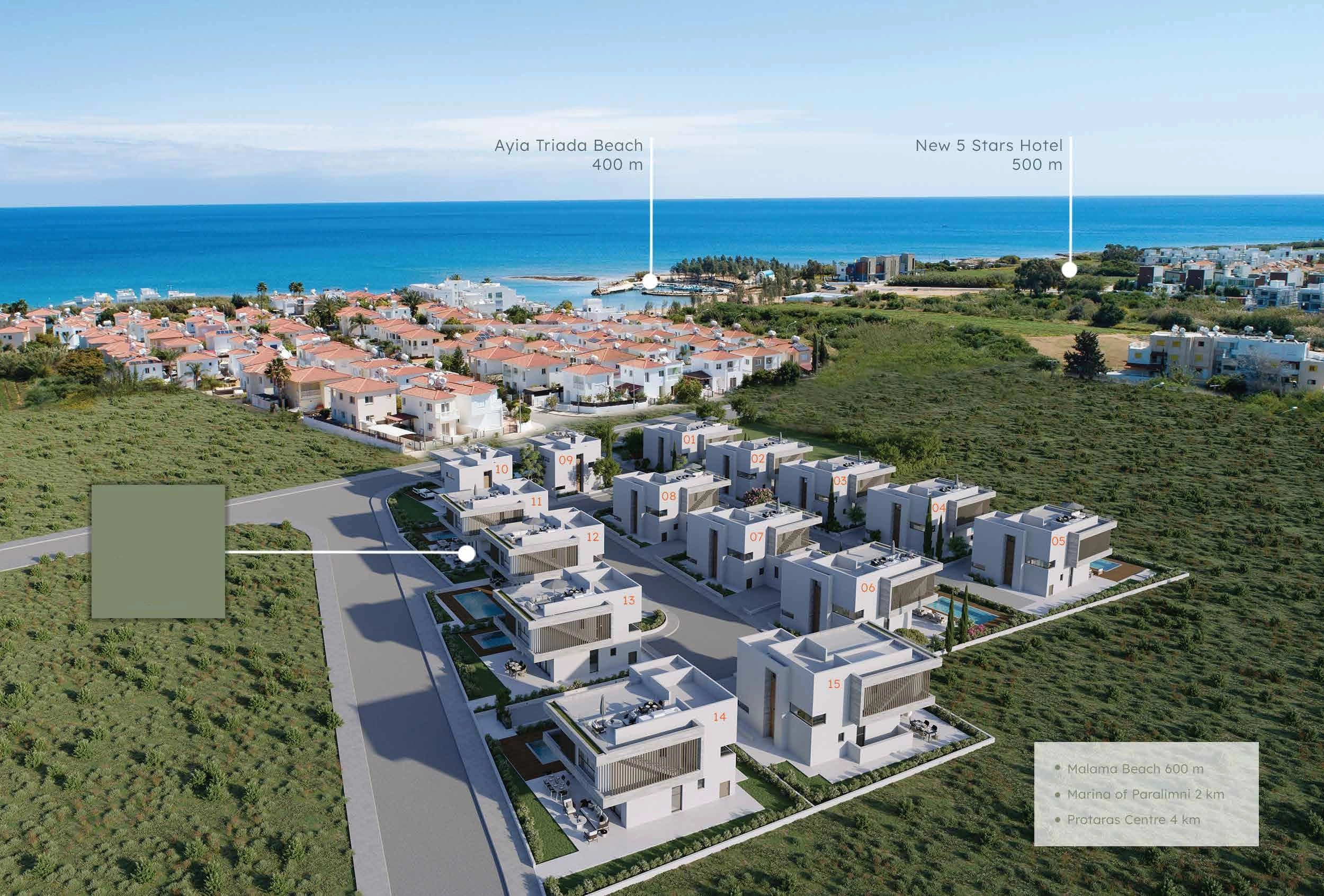 Nestled between the picturesque beaches of Malama and Ayia Triada, this residential complex offer an array of 36 modern villas in 4 phases. Choose from 3 and 4 bedroom reasonably priced villas, all of which boast spacious modern living spaces, private swimming pools and quality finishes.