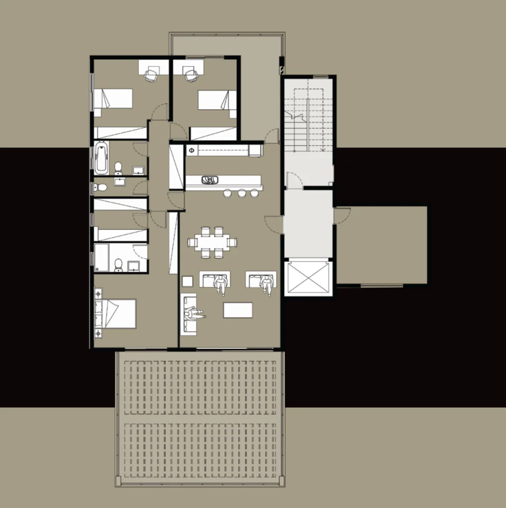 – Expansive open-plan living, dining, and kitchen area