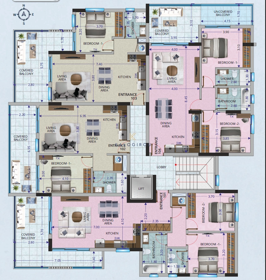 Extra: Provision A/C, Covered Veranda, Roof Garden, Covered parking, Storage room, Elevator