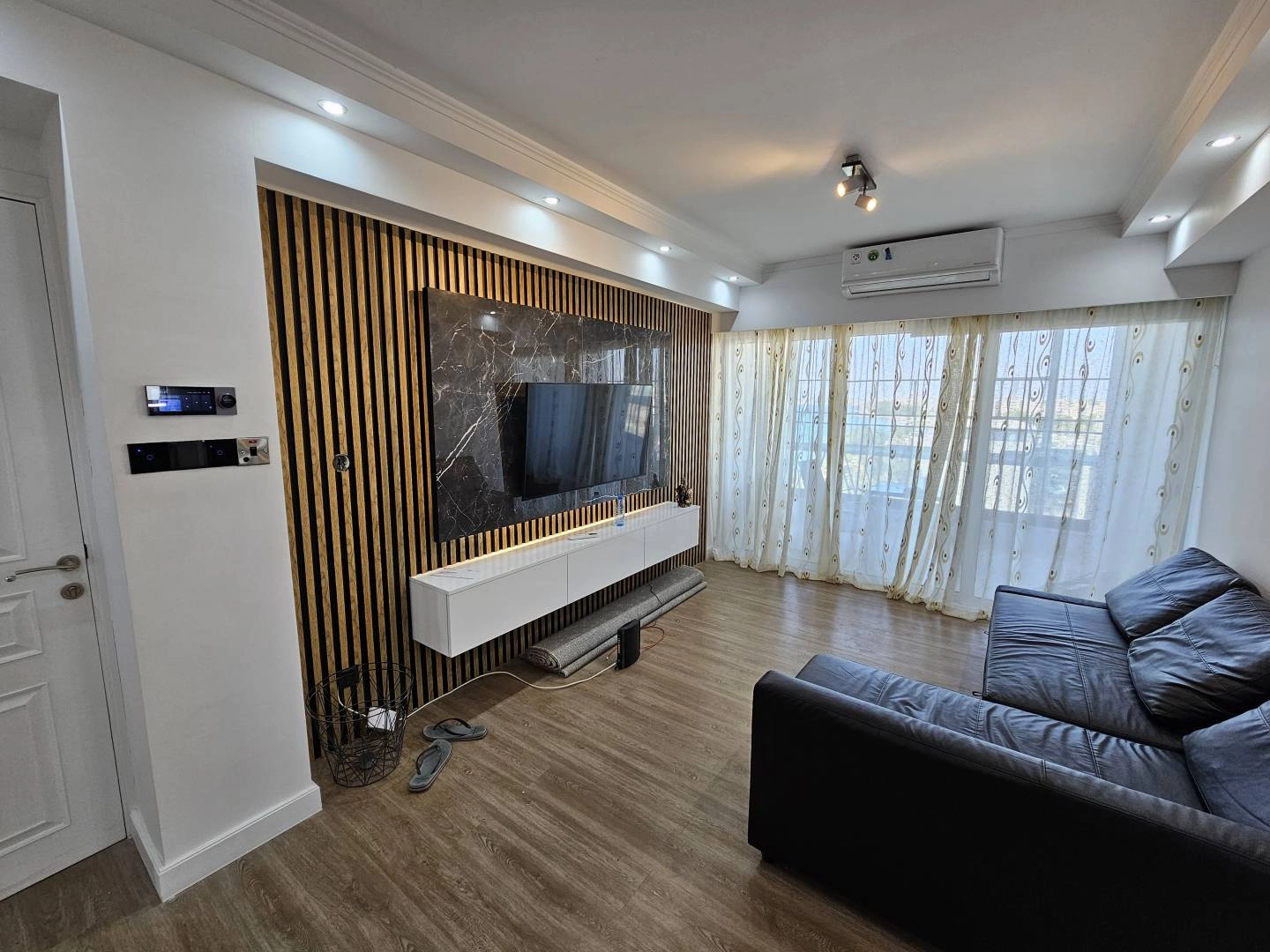 For sale 2 bedroom apartment completely renovated in renovated buildings on the first line in the Kanika Enaerios area, walking distance to restaurants, shops, bus stop and much more. The apartment has new furniture, household appliances, new air conditioners, modern underfloor heating and a smart home system. The verandas offer a beautiful view of the sea and the city.