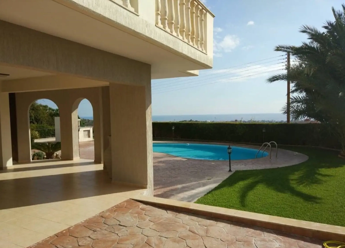 The villa features a well-designed layout with five bedrooms and four bathrooms, providing ample space for both living and entertaining. It is equipped with underfloor heating for year-round comfort, a private sauna for relaxation, and a large swimming pool perfect for enjoying the Mediterranean climate. A secure garage is also included.