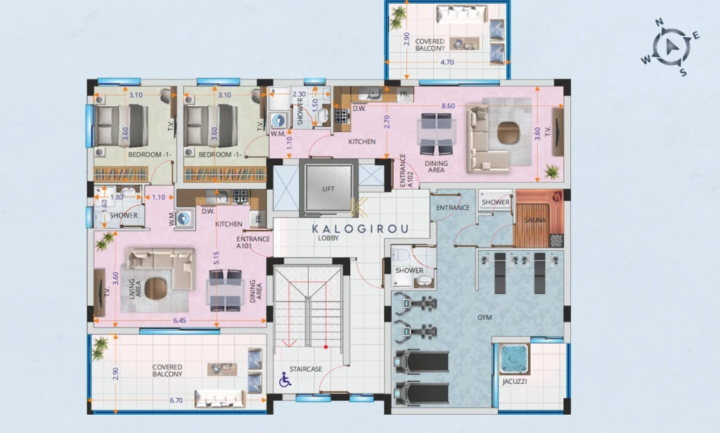 Sixth Floor, Two Bedroom Apartment for Sale in Livadia area, Larnaca. The project is a luxurious complex located in Livadia area of Larnaca in a close distance to the new American University Campus, the heart of New Marina and the City centre of Larnaca. It neighbours the high end establishments planned in the New Marina developments. The project is very near to supermarkets, private schools such and with immediate access to highways to Nicosia, Limassol, Paphos and Ammoxostos.