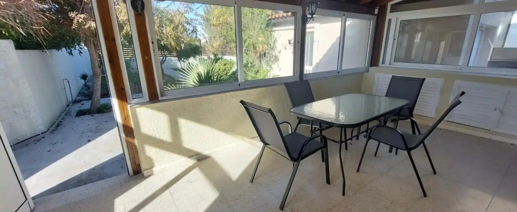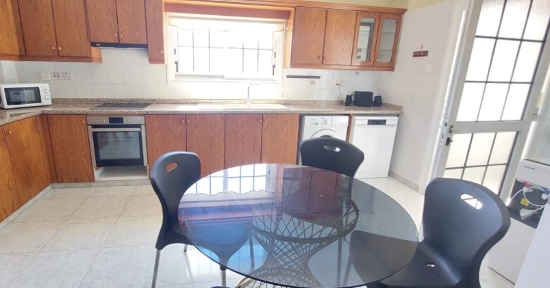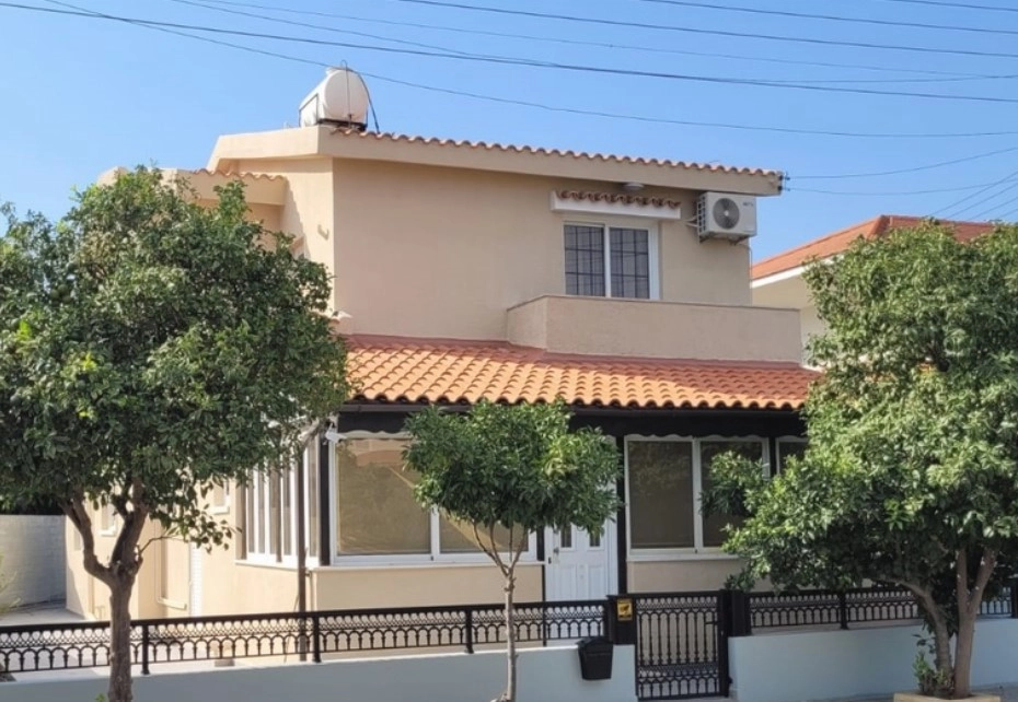 Two-storey 4-bedroom house with an area of 215 m2 for sale in the area of Dhekelia, Oroklini, Larnaca. The house includes four bedrooms, several bathrooms, a kitchen, a living room, a balcony and a spacious courtyard with a garden. The residence is fully furnished and equipped with air conditioning in all rooms, as well as a security system. There is a covered parking space on site. The property is located in a quiet area, within walking distance of all necessary amenities.