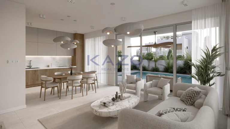 This elegant three-bedroom villa is part of an exclusive residential development in the heart of Ayia Triada, just 700 meters from the new Paralimni Marina and within walking distance of Cyprus’ first plastic-free beach.