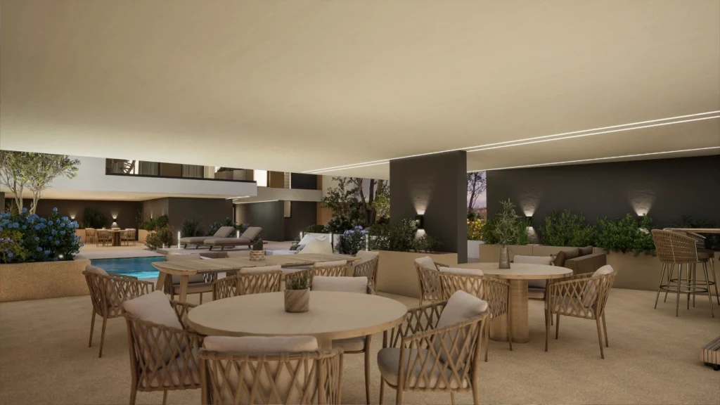Apartment for sale in a residential complex in Livadia, Larnaca. The complex includes 114 apartments and office spaces located around a green central courtyard.The complex has a swimming pool, a fully equipped gym, and a special fitness space. There is an office area/coworking space, a children’s playroom.The apartments are located in one of the most popular and promising areas of the city, surrounded by new luxury residential and commercial facilities, as well as infrastructure facilities, and in close proximity to the best tourist resorts of Larnaca. The complex is located in close proximity to the beaches and has direct access to all the amenities of the city.Apartments are an excellent option for both living and investment.
