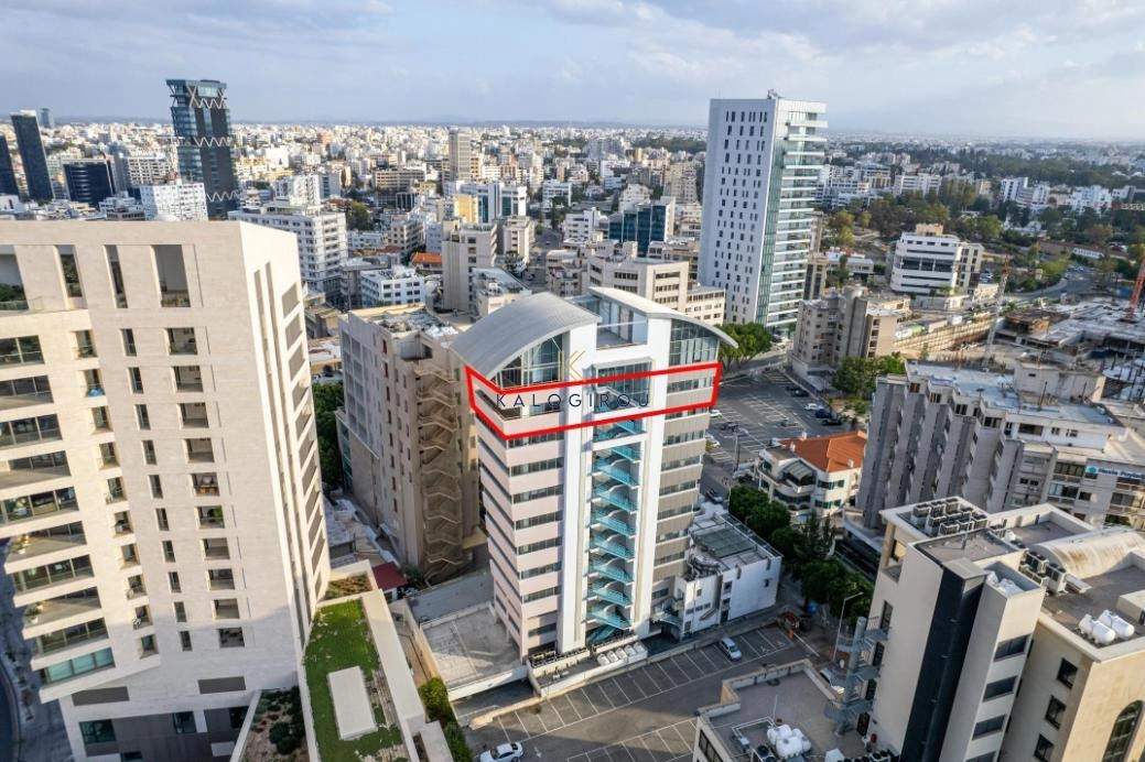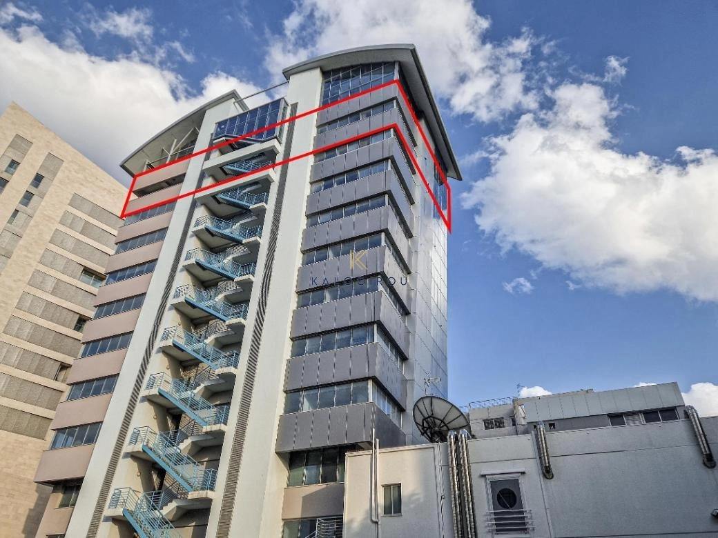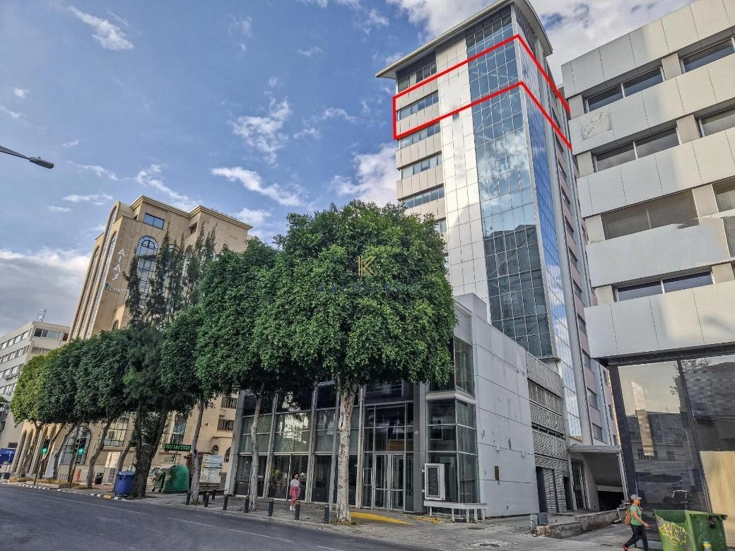 The property concerns a whole floor offices located on the 10th floor of a mixed-use building in Trypiotis. The building known as ‘Kriticos Tower’ is located on Diagorou and Evagorou streets, 75m from Themistokli Dervi avenue.