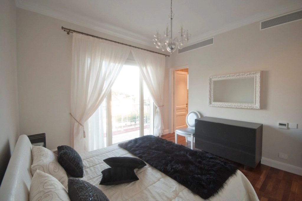 The neoclassical residence is finished in elegant beige tones with premium materials: Italian marble and parquet, Versace mosaic décor, Villeroy & Boch sanitary ware, and a designer Italian kitchen with Corian countertops.