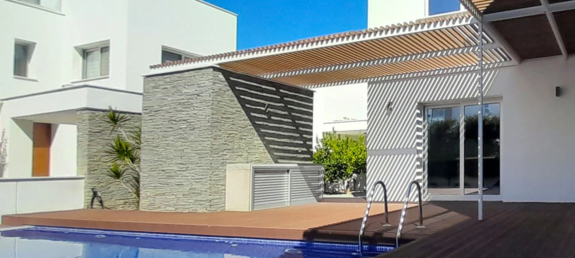 This is a luxury 4 bedroom villa for sale in Paphos, Cyprus, in the heart of the tourist area within walking distance to the sea. The residence is deally located offering easy access to a variety of services and amenities places of interest, “Blue-flag” beaches, easy access to highways, schools, hospitals, shops, 18-hole golf courses and five-star resorts; the Pafos International Airport is a short drive away.