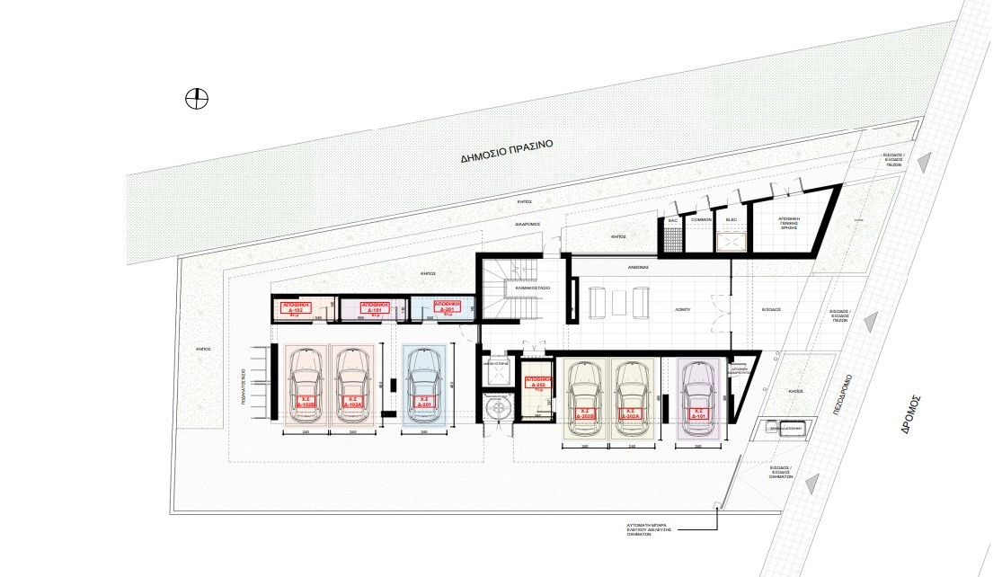2 Covered parking spaces for each apartment with provision for car charging in each space
