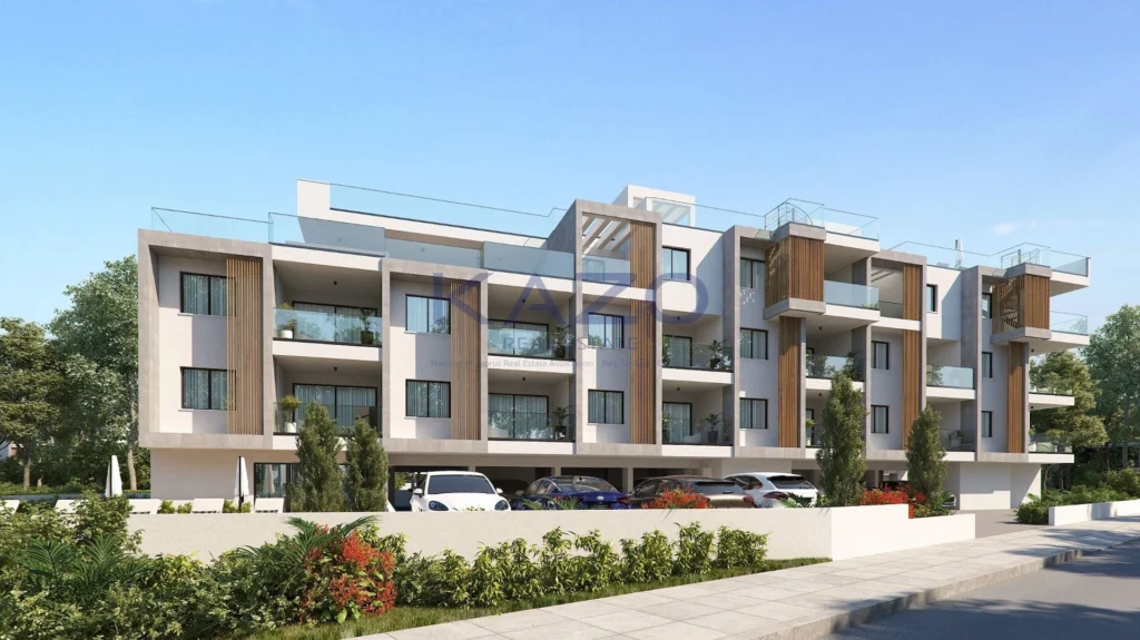 The apartment features a modern bathroom, an open-plan living and kitchen area, and plenty of natural light throughout. Step outside to enjoy the communal swimming pool, where you can relax or socialize with neighbors.