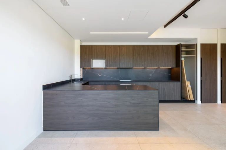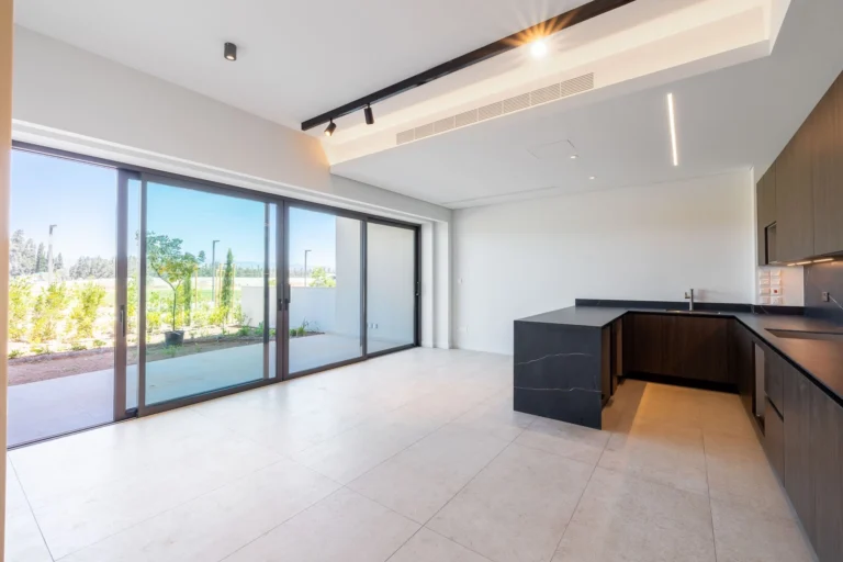 The kitchen is designed with both elegance and practicality, featuring sleek cabinetry, premium countertops, and integrated appliances. Its position within the open-plan layout allows seamless interaction with the living and dining spaces, making it the functional and social heart of the home.