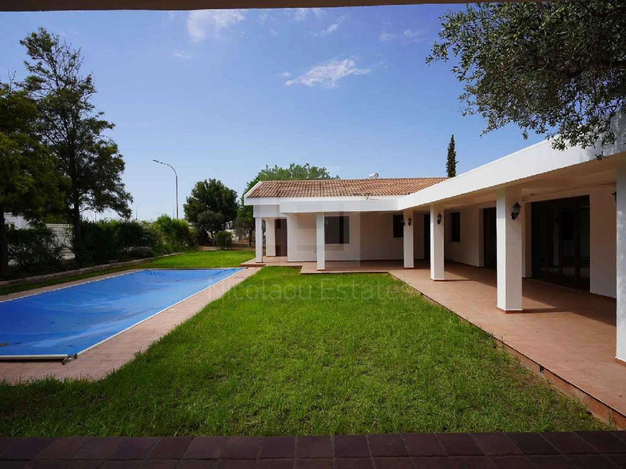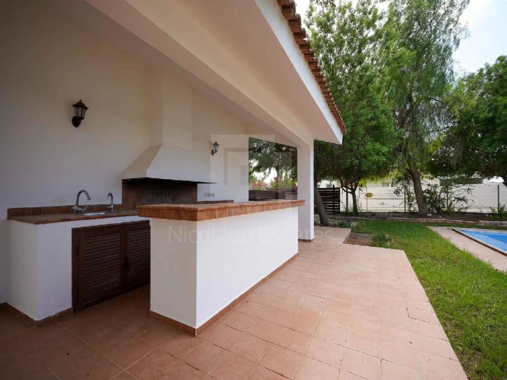 Ισόγεια κατοικία 5 υπνοδωματίων με πισίνα προς πώληση στα Λατσιά κοντά στο ΓΣΠ δίπλα σε όλες τις ανέσεις και υπηρεσίες και με εύκολη πρόσβαση στον αυτοκινητόδρομο. Το ακίνητο είναι χτισμένο σε οικόπεδο εμβαδού 1.979τμ. το οποίο εφάπτεται σε δύο εγγεγραμμένους δρόμους με συνολικό πρόσωπο περίπου 90 μέτρα. Η κατοικία διαθέτει υπόγειο και βοηθητική οικοδομή. Α ποτελείται από κουζίνα τραπεζαρία σαλόνι γραφείο αποχωρητήριο ξένων πλυσταριό 4 υπνοδωμάτια με ενσωματωμένο ντους αποχωρητήριο καλυμμένο χώρο στάθμευσης και καλυμμένες βεράντες. Εξωτερικά διαθέτει πισίνα ντους με αποχωρητήριο κήπο με διάφορα καλλωπιστικά φυτά και ψησταριά. Επίσης υπάρχει υπόγειο εμβαδού 37τμ περίπου το οποίο χρησιμοποιείται ως λεβητοστάσιο και αποθήκη. Η κατοικία διαθέτει εμβαδό κλειστού χώρου 420 τ.μ. περίπου εμβαδό καλυμμένων βεραντών 105τ.μ. περίπου και εμβαδό καλυμμένου χώρου στάθμευσης 40 τ.μ. περίπου. Η βοηθητική οικοδομή έχει εμβαδό καλυμμένου χώρου 110 τ.μ περίπου και εμβαδό καλυμμένων βεραντών 17 τ.μ. περίπου. Αποτελείται από κουζίνα καθιστικό τουαλέτα με ντουζιέρα πλυσταριό ένα υπνοδωμάτιο και καλυμμένες βεράντες. Στον όροφο υπάρχει στούντιο εμβαδού 28 τ.μ. περίπου και αποτελείται από ντους με αποχωρητήριο και ένα υπνοδωμάτιο. Η πρόσβαση στο στούντιο επιτυγχάνεται δια μέσω εξωτερικής μεταλλικής σκάλας. Υπάρχουν κλιματιστικά σε όλους τους χώρους κεντρική θέρμανση και αποθήκη. Η κατοικία αποτελεί ιδανική επιλογή για ιδιοκατοίκηση ή για ενοικίαση. Τίτλος ιδιοκτησίας διαθέσιμος. Ground floor 5 bedroom house with swimming pool for sale in Latsia close to the GSP next to all amenities and services and with easy access to the highway. The property is built on a plot of 1 979 sqm. which adjoins two registered roads with a total frontage of approximately 90 meters. The house has a basement and an auxiliary building. It consists of a kitchen dining room living room office guest toilet laundry room 4 bedrooms with built in shower toilet covered parking space and covered verandas. Outside it has a swimming pool shower with toilet garden with various ornamental plants and a ΒΒQ. There is also a basement of approximately 37 sqm which is used as a boiler room and storage. The house has an indoor area of approximately 420 sqm a covered veranda area of approximately 105 sqm and a covered parking area of approximately 40 sqm. The auxiliary building has a covered area of approximately 110 sqm and a covered veranda area of approximately 17 sqm. It consists of a kitchen living room bathroom with shower laundry room one bedroom and covered verandas. On the first floor there is a studio of approximately 28 sqm and consists of a shower with toilet and one bedroom. Access to the studio is achieved via an external metal staircase. There are air conditioners in all areas central heating and storage. The residence is an ideal choice for owner occupancy or for rental. Title deed available