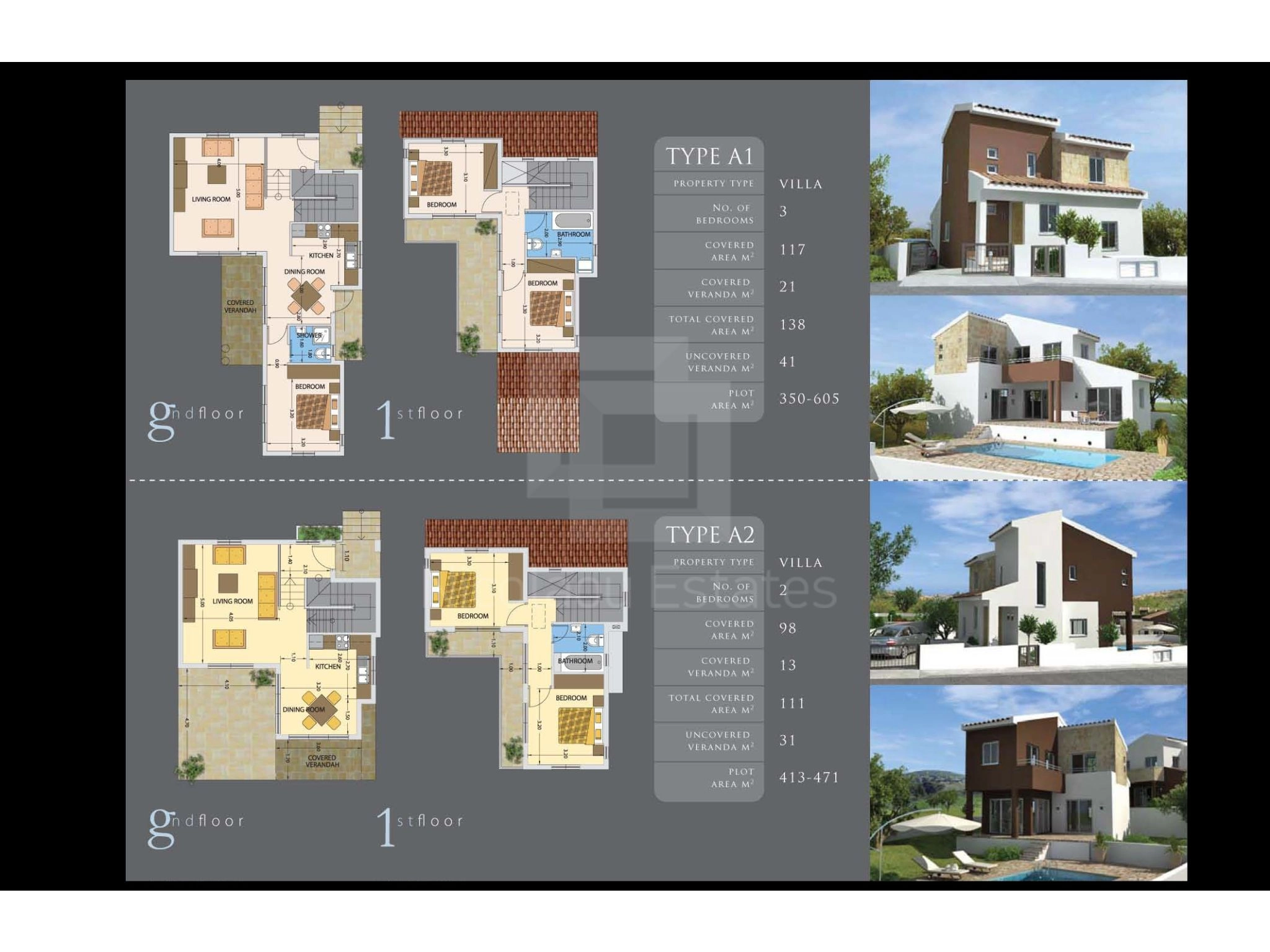 Ideally nestled on the highest hilltop of Pissouri village overlooking Pissouri Bay one of the best beaches on the island. Just off the main Pafos to Limassol road next to Pissouri National Century Park National treasure of Cyprus. A stunning natural beauty of location not ruined by the time but with all the advantages of an international resort makes Pissouri village an attractive tourist destination and choice of residence. Offices banks small shops restaurants and bars are found in this little but yet flourishing place. The project comprises 25 two and three bedroom Villas together with 13 two and three bedroom Bungalows. All units cater open plan living dining kitchen areas with private swimming pool surrounded with extensive outdoor patio gardens.
