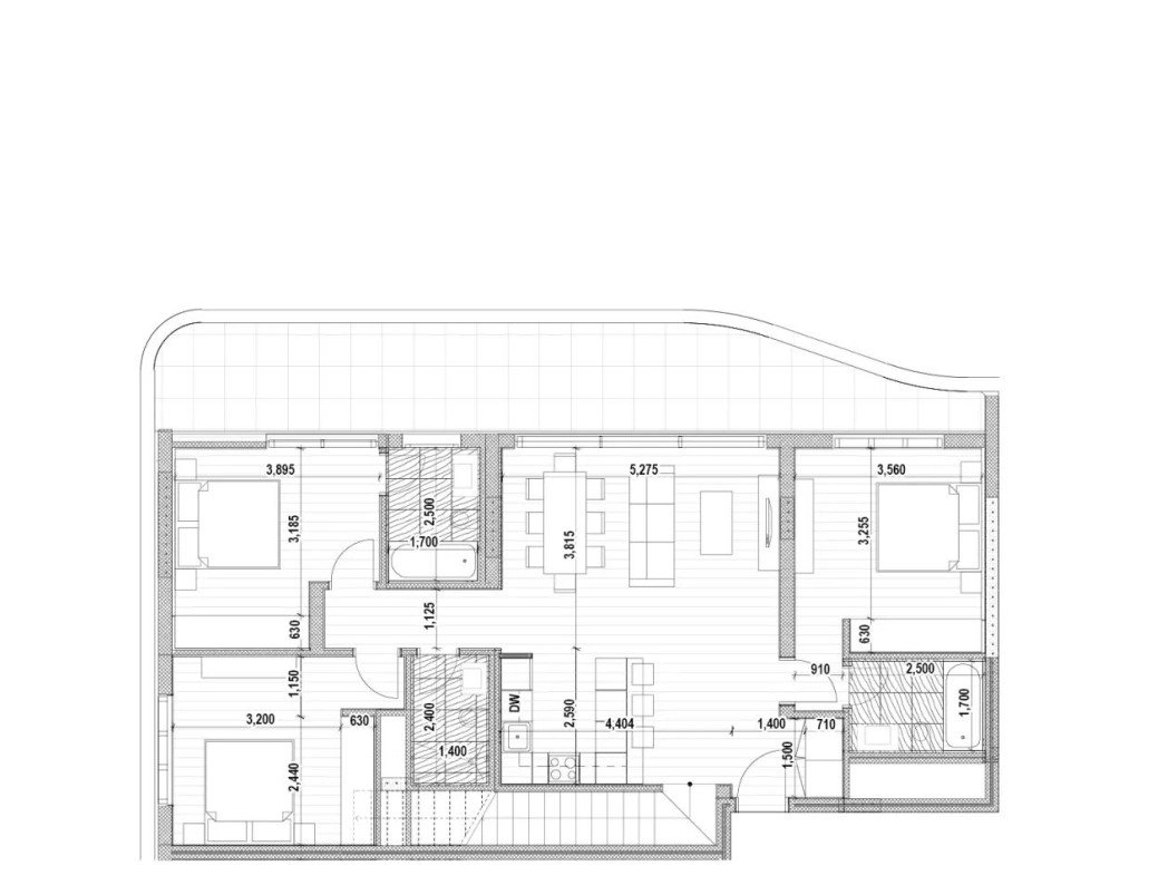 Luxury apartment in central Limassol, in a privileged and quite neighborhood of the tourist area, approximately half a kilometre from the seafront. The building reaches up to 8 storeys in height. The buildings are set around the landscaped garden, located in the center of the project. The design is influenced by elements from both the natural and man-made world. Reminiscent of a superyacht, the superstructure of each block gently terraces down from its highest point with balconies on all sides. Wide horizontal bands form continuous balustrades that wrap around the blocks at each level, emphasizing the horizontal nature of the development, which stretches to over 300 linear metres in length. The residents will enjoy the privacy of the gated compound with extended hotel-type facilities including concierge, SPA, outdoor pool, heated indoor pool, gym, landscaped gardens, playground for kids clubhouse with a playroom.