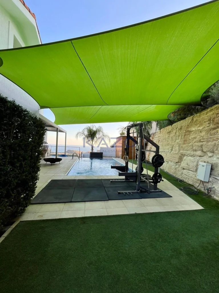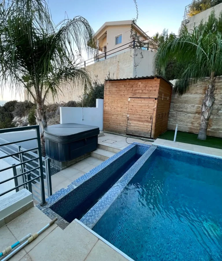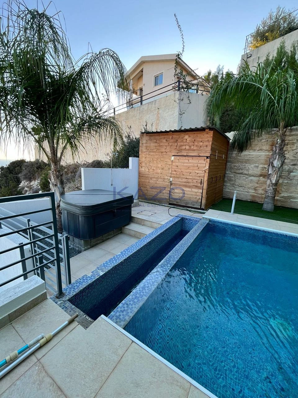 Step outside to a large plot with a private swimming pool, where you can relax and take in the amazing panoramic views of the countryside and the sea. The house is partially furnished and includes a Jacuzzi, perfect for unwinding after a long day. With its proximity to the highway, access to nearby amenities and the beach is convenient, making daily commuting simple.
