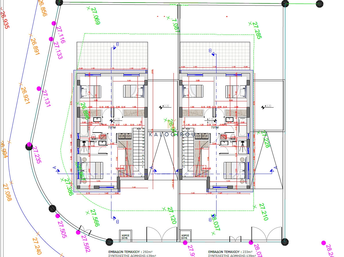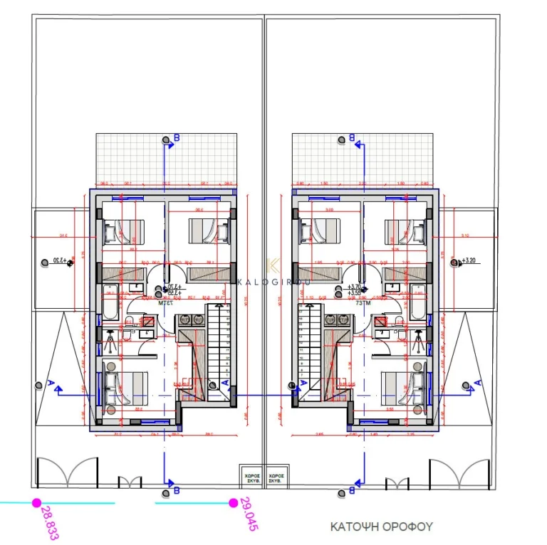 Double Storey house for sale in Larnaca, Pyla area. The ground floor consists of an open plan kitchen, living, dining area, guest wc, veranda on the back side and garden. The first floor consists of 3 bedrooms, master is en suite (shower) and a main bathroom. Additionally, the house has covered parking space. Internal covered area of the house is 140 sqm and plot area is 292 sqm.